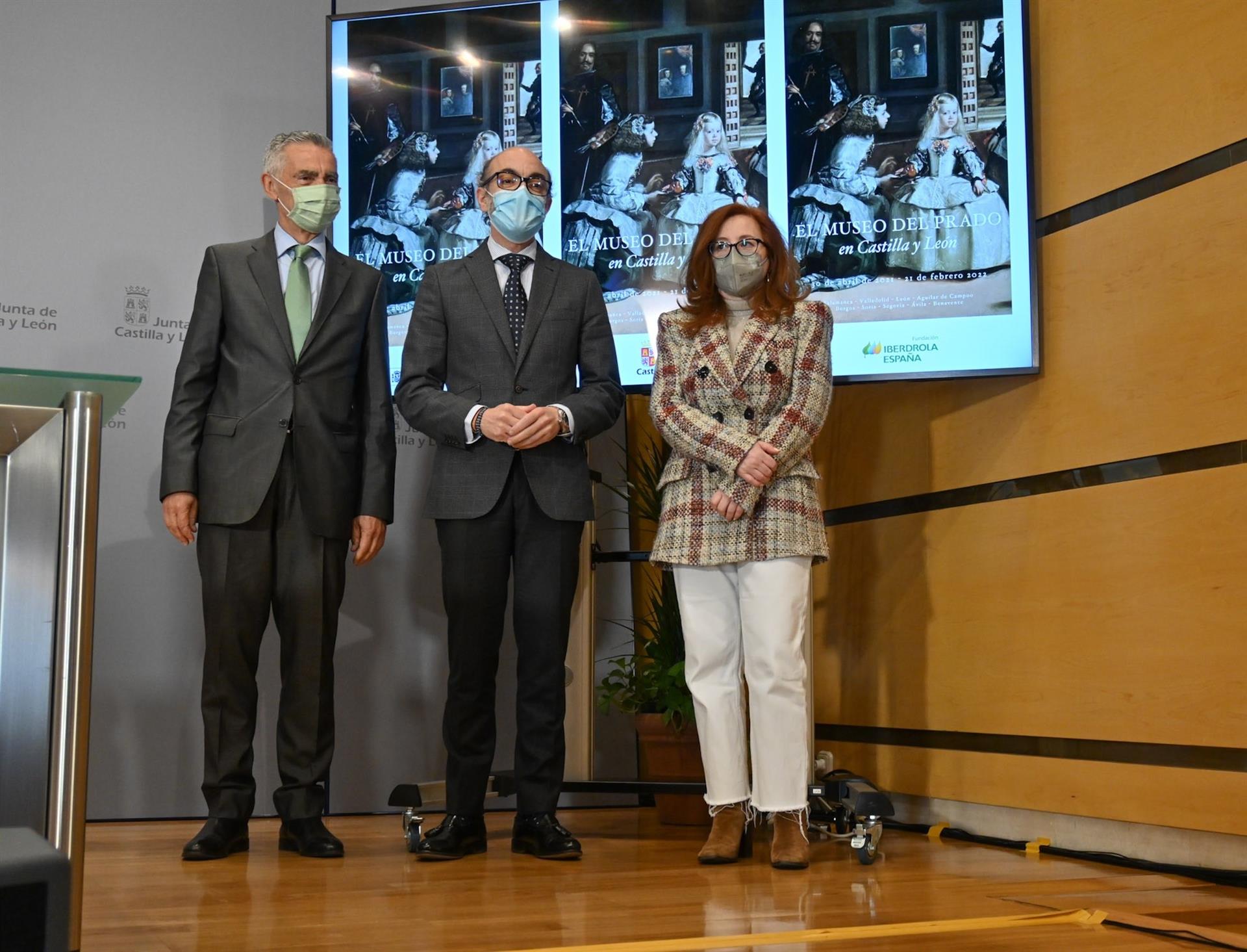 El consejero de Cultura y Turismo, Javier Ortega; el presidente de la Fundación Iberdrola España, Fernando García, y la coordinadora general de Educación del Museo Nacional del Prado, Ana Moreno, han presentado este miércoles el convenio que acercará a los castellanoleoneses las obras más significativas de la Colección Permanente de la pinacoteca nacional.