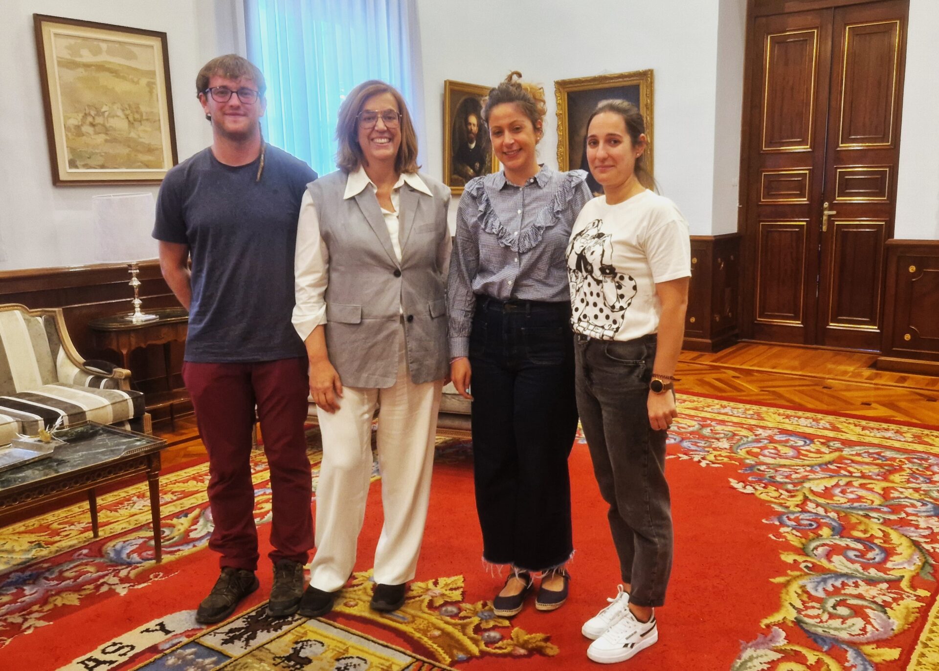 La presidenta de la Diputación, Ángeles Armisén, acompañada de la diputada de Cultura, Carolina Valbuena, recibieron al Grupo de Danzas y Paloteo de Autilla del Pino, representados por su presidenta, Beatriz Bercianos y su vicepresidente, José Luis Andrés.