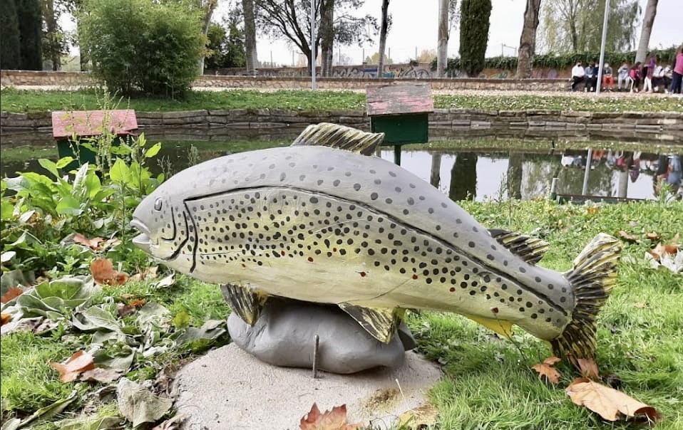 Paralelamente, el Ayuntamiento de Saldaña instaló junto al estanque del Parque Público Javier Cortes diversas esculturas en madera que representan varias de las especies animales que podemos encontrar en los ríos y arroyos, como la trucha, la nutria o el cangrejo de río.
