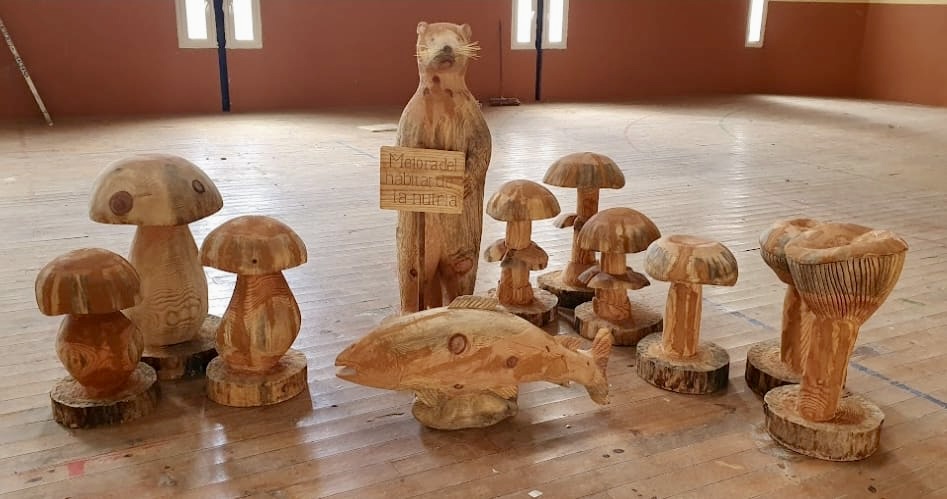 Se da además el valor añadido de que la madera empleada para la realización de todas estas tallas procede de la intervención forestal que hubo que llevarse a cabo por parte del propio Ayuntamiento como consecuencia del temporal de viento y lluvia que castigó a la comarca el pasado mes de diciembre de 2019.
