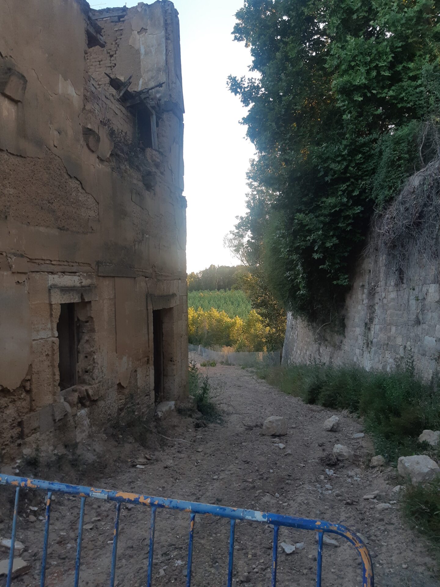Primero una cinta de la Guardia Civil, que impide también el paso hacia lo que era el molino de Calahorra, y más dentro del puente otra de balizamiento y un cartel indican que es mejor no acercarse al paso-atalaya. “CHD Prohibido el Paso por peligro de desprendimiento” reza ese cartel que ha sido reutilizado del emplazamiento que tenía antes, a apenas unos metros, en la bajada hacia el fábrica de luz de Calahorra.