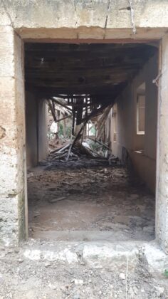 Dos edificios de los que solo queda la estructura más potente sobre la que se construyó dejando paso al aire y a la vegetación en el resto.