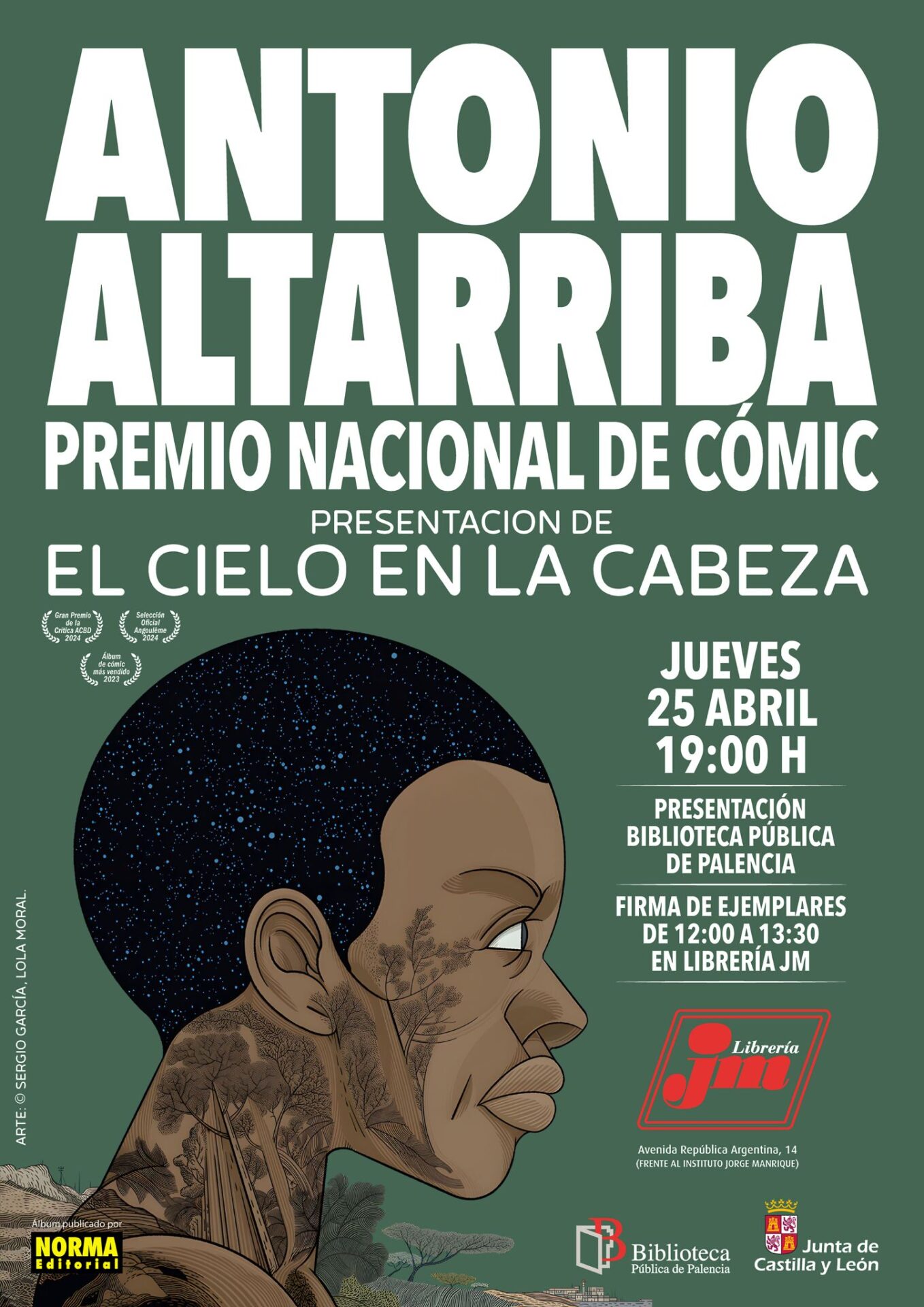 Altarriba estará en Palencia para presentar su último trabajo: ‘El cielo en la cabeza’ con Sergio García a los pinceles, que cuenta una epopeya sobre la emigración desde África hasta las costas de Europa. El dibujante palentino Félix Velasco será el encargado de realizar la presentación al autor aragonés, que estará firmando ejemplares en la librería J.M de la capital el mismo jueves 25 por la mañana, de 12:00 a 13:00 horas. Por su parte, otro reconocido dibujante palentino, Félix Ruiz, ha sido el encargado de realizar el cartel de la presentación.