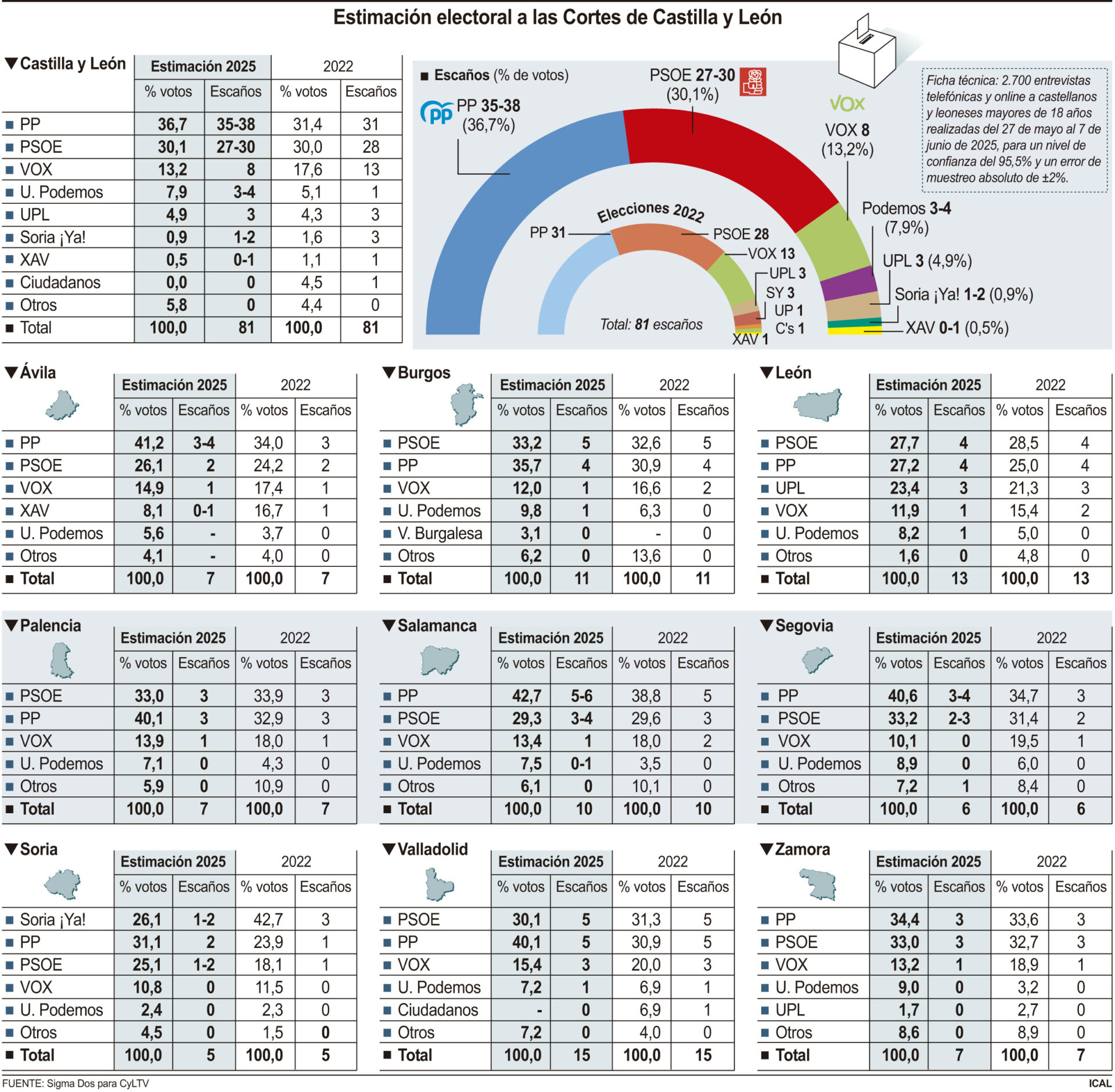 Estimación electoral a las Cortes de Castilla y León (20cmx20cm)
