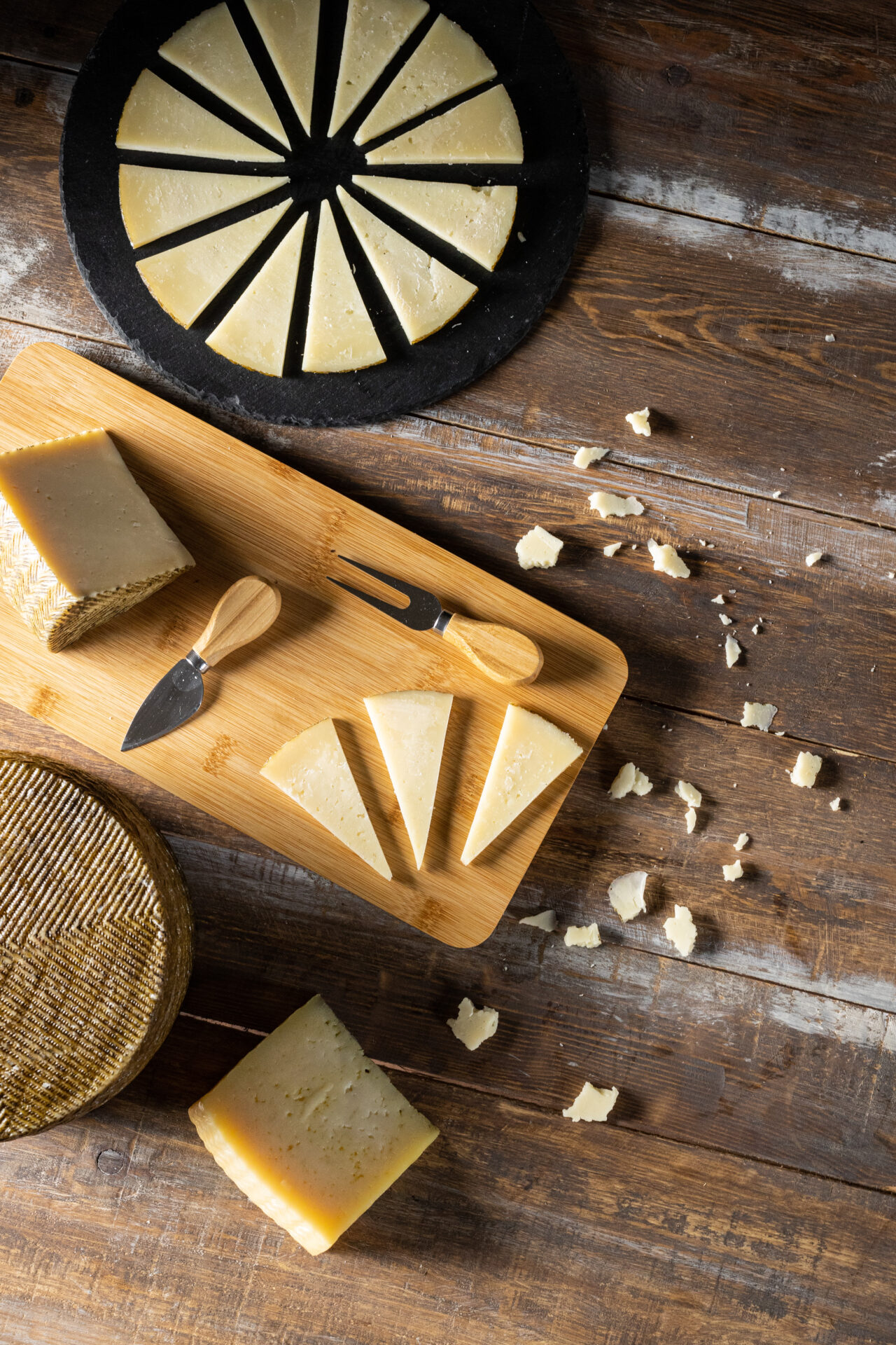 Se elabora a partir de tres leches, vaca, oveja y cabra y su curación prolongada le proporciona su característico sabor intenso.