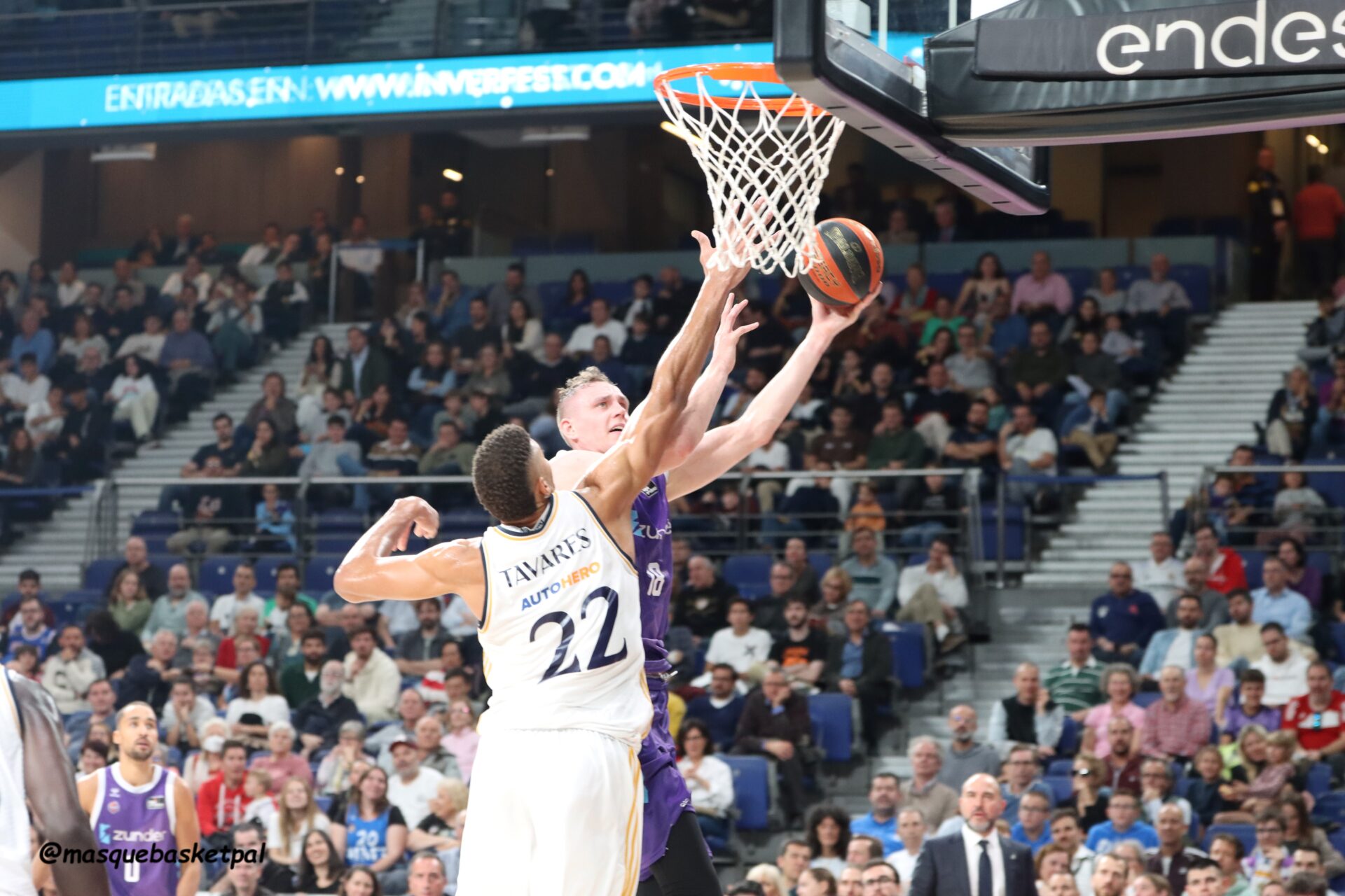 No fue lo único que bajó el Madrid. También la intensidad en sus ataques, conocedor de que el mucho tenía que cambiar el partido para dejar perder su imbatibilidad este curso. Y con varias jugadas sin anotar el Madrid, y un par de robos de los visitantes, la hinchada del Zunder se vino arriba y atronó el Wizink Center. Con poco se conformaba la afición. Con ver disputar. Porque el marcador ya reflejaba un 60-37, merced a un tiro lejano sobre la bocina de Pasecniks.