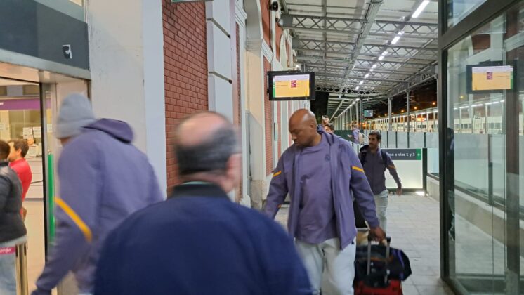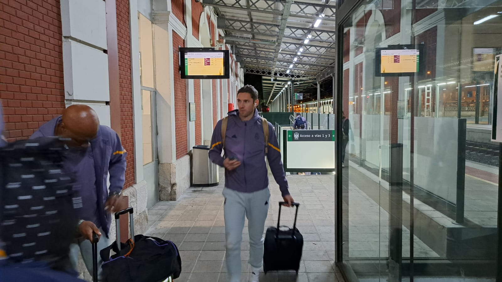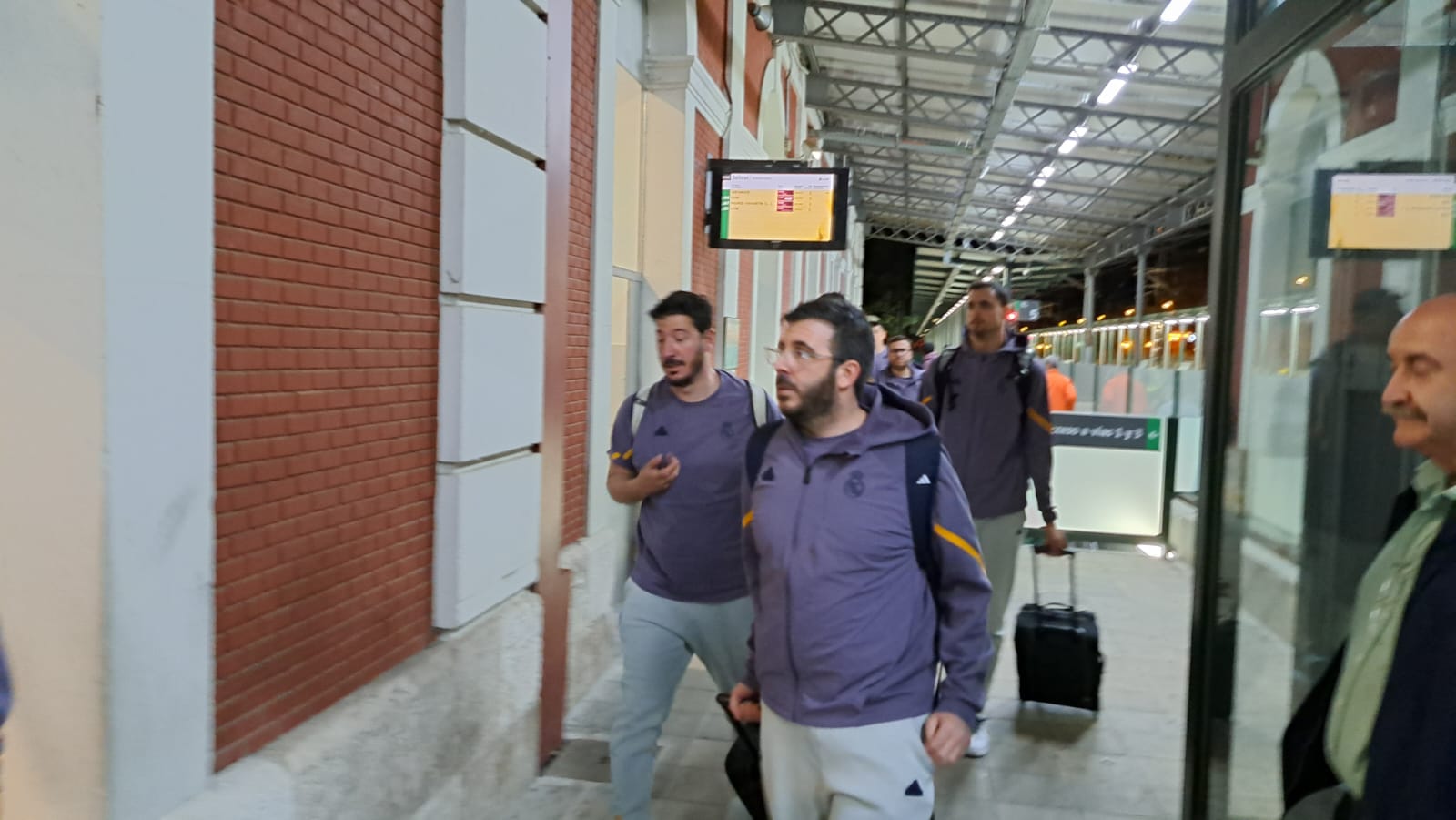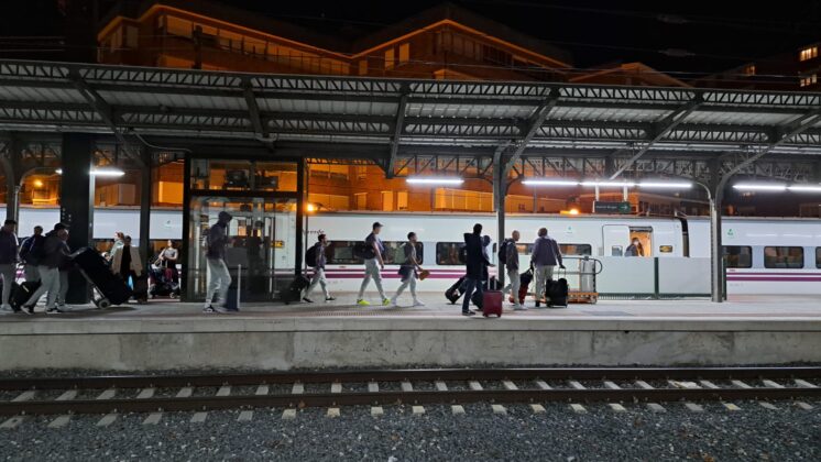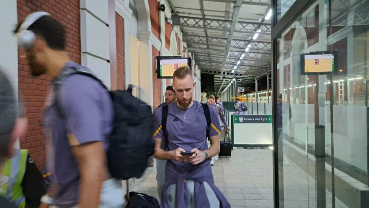 Había pocas opciones para recorrer el trayecto de Palencia desde Madrid. Finalmente, la expedición del Real Madrid de baloncesto ha escogido el tren como medio de transporte para llegar a la capital palentina, en concreto, en el Alvia que salía desde Chamartín a las 19:08 y que ha llegado, puntual, a las 20:37 a Palencia.