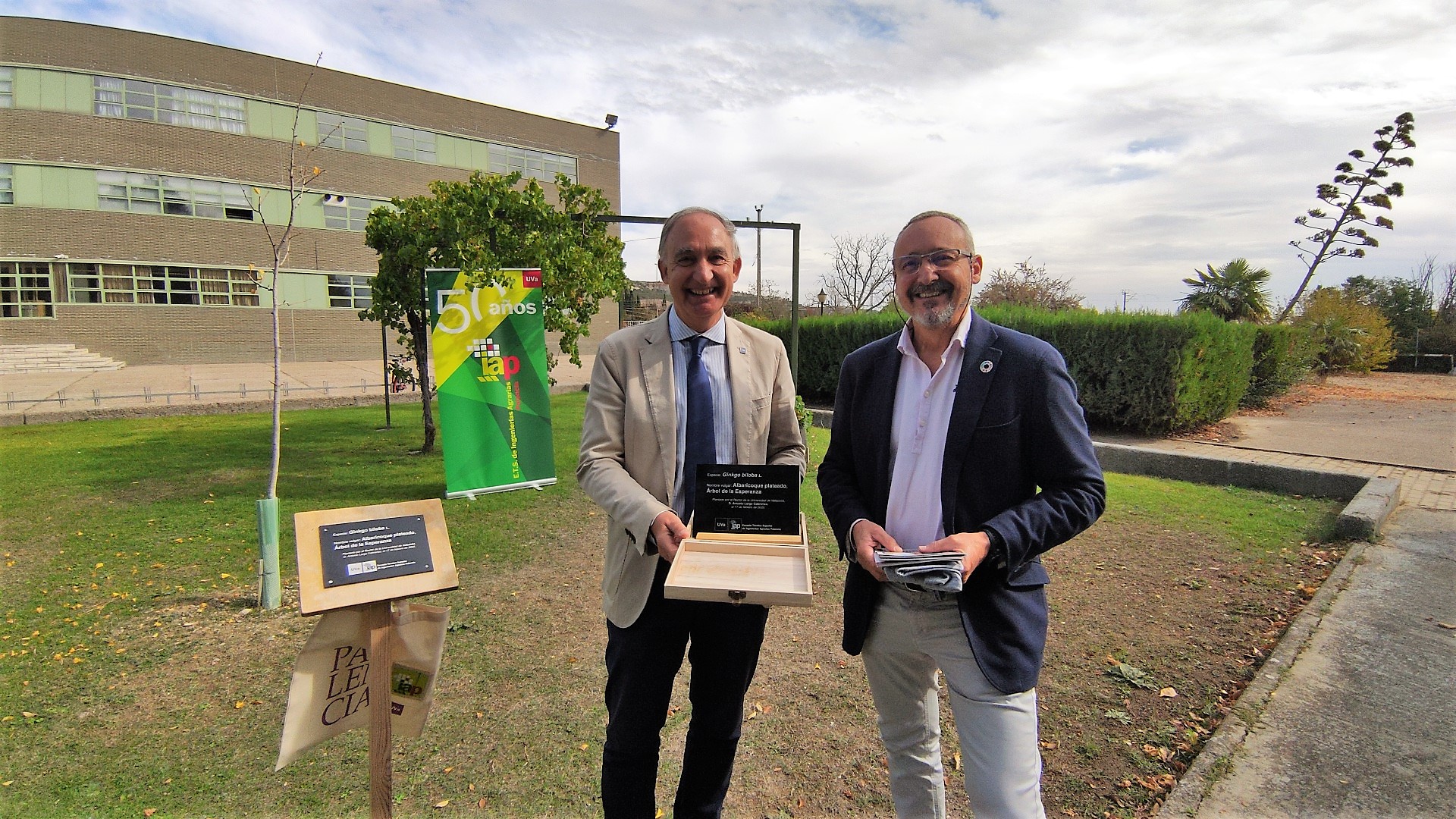 El Director de la Ingenierías Agrarias, Joaquín Navarro Hevia, hizo entrega al rector de una placa conmemorativa. La placa recuerda el momento en que Largo Cabrerizo plantó un Ginko Biloba. Se trata de el árbol de la vida y de la esperanza y se encuentra en las cercanías del edificio de agrarias desde febrero de 2020.