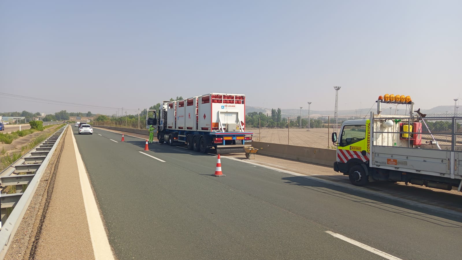 Se dio aviso a los bomberos para acometer la limpieza de la carretera pero mientras continúan las labores de mantenimiento, se ha señalizado y cortado el carril derecho de la autovía.