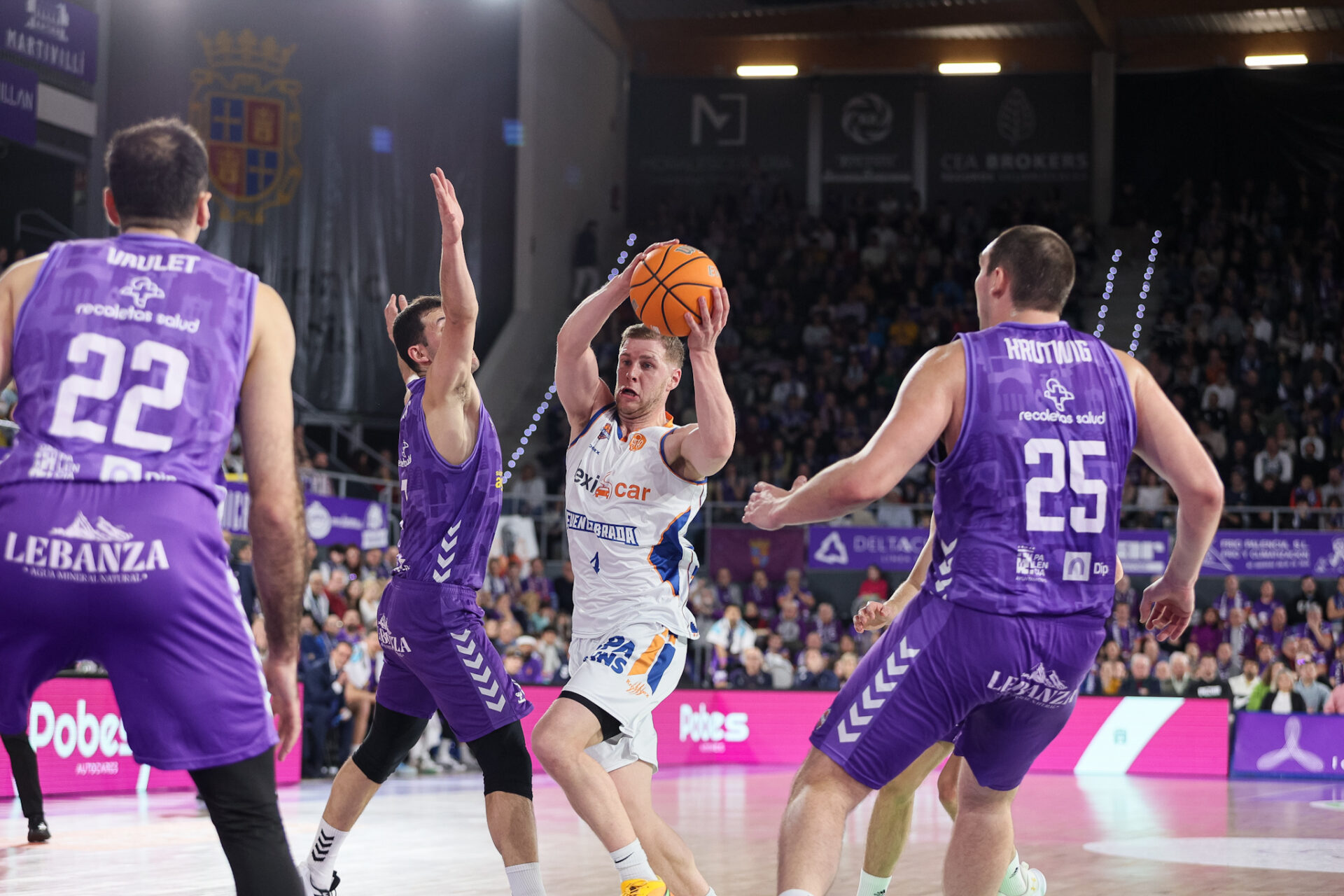 No influyeron esas decisiones en la manera de defender de los locales, que robaron tres balones consecutivos. 36-35 falta de 3,30 para el paso por vestuarios en un partido de intensidad máxima. De los que un instante mirando a otro lado hacía perderse una batalla épica en la cancha, como la que se libró hasta que Palencia logró su máxima ventaja hasta entonces: 38-35. Tiempo muerto visitante ante el regocijo local.
