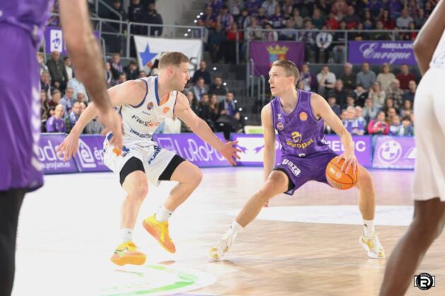 Uno abajo y posesión para los morados. El todo o la nada. Saque de banda hacia Krutwig que se zafa de su defensor y anota ante la parroquia morada. 89-88.