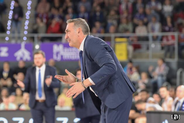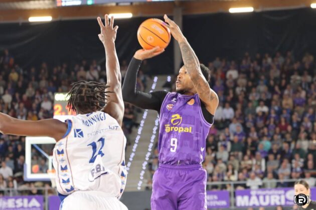 Tiempo en el que conmino el entrenador local a los suyos a probar de tres. Bingo de Kamba en la primera jugada, seguida de una más que discutible falta de Krutwig señalada por el trio trencilla al defender el rebote en acción defensiva.