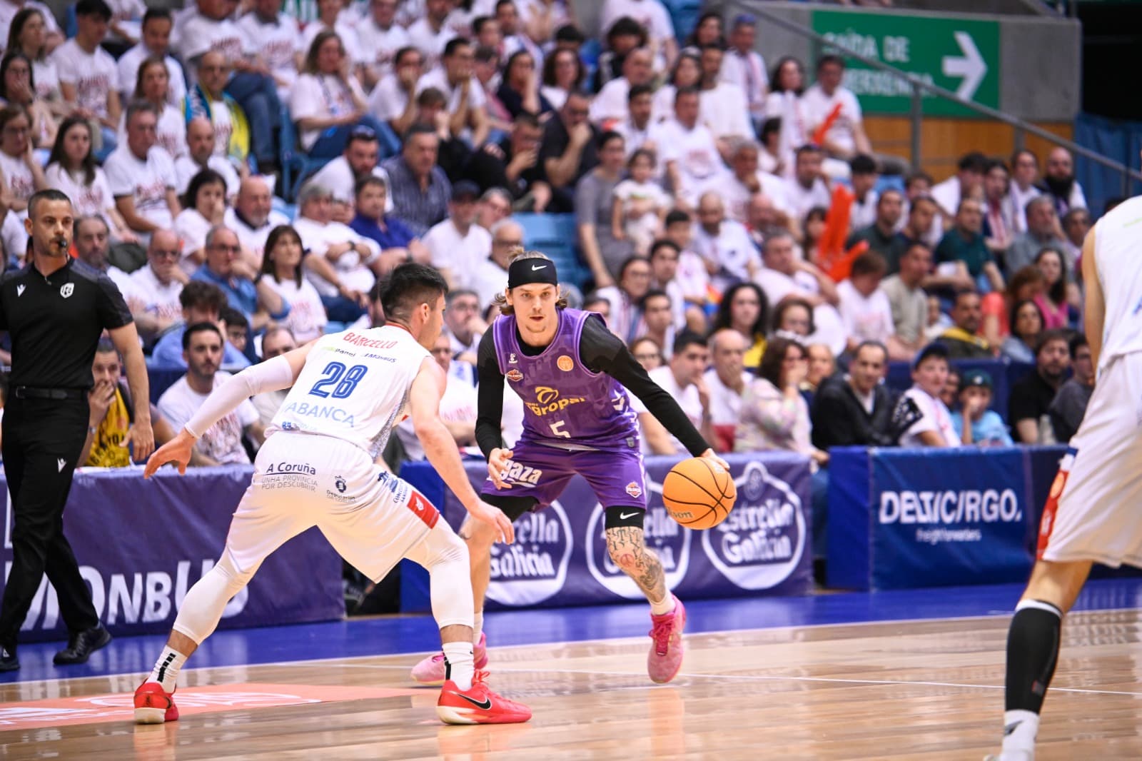 Los morados, con un acierto arrollador en la primera parte desde el triple, aguantaron hasta los últimos segundos del encuentro ante el Obradoiro, que se marca el primer punto en la eliminatoria.