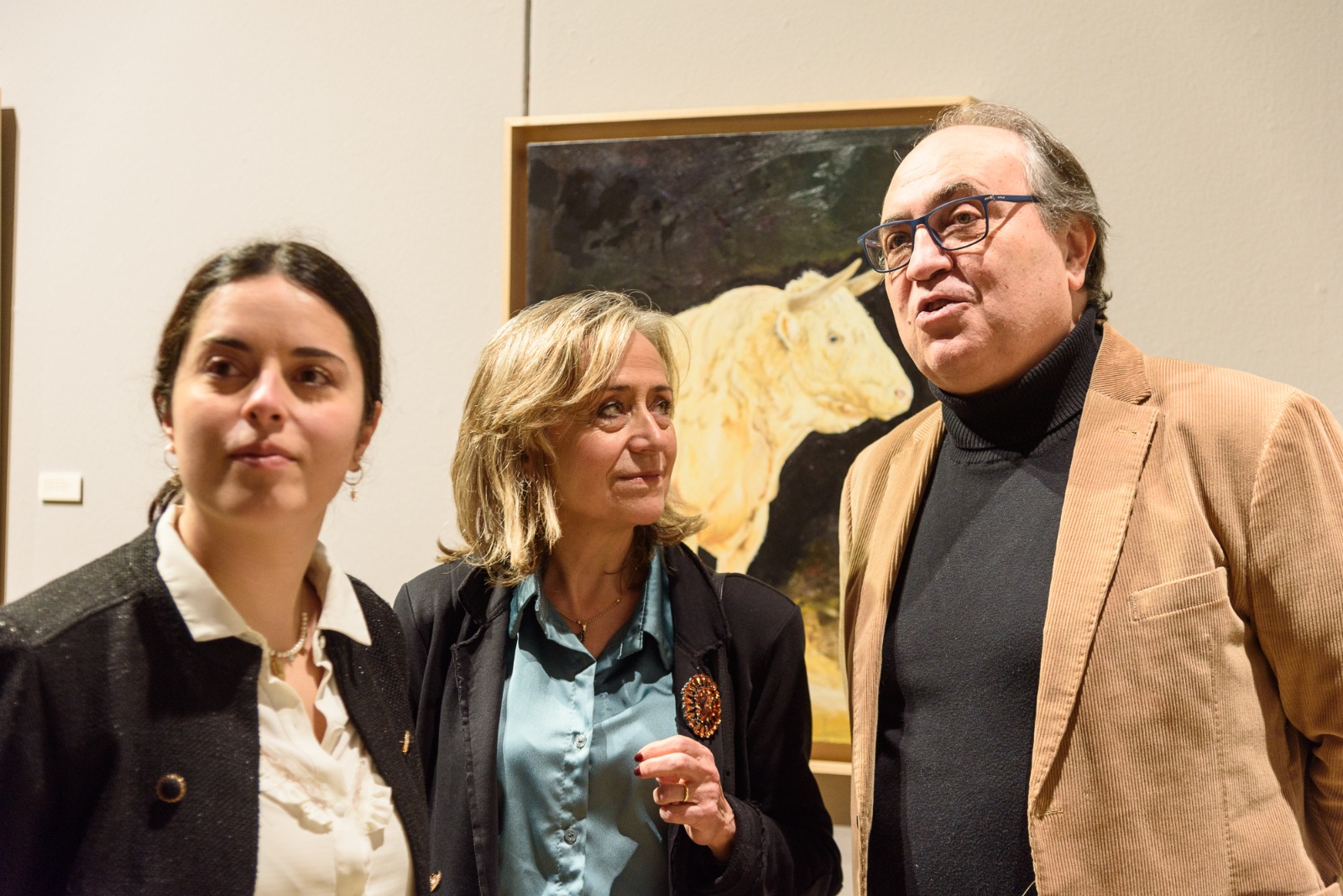 La vicepresidenta primera de la Diputación de Palencia, María José de la Fuente, junto a la diputada de Acción Cultura, Patricia Pérez y al presidente del Colegio de Veterinarios de Palencia, Luis Fernando Román, han inaugurado ‘Taurokathapsia’ con su autor, Luis Alberto Calvo Sáez (LACASA) y presidente del Consejo General de Colegios Veterinarios de España y vicepresidente de la Academia de Ciencias Veterinarios de Castilla y León. La exposición ‘Taurokathapsia’ nos traslada a los míticos laberintos cretácicos y al concepto griego de Katarsis. Esta exposición es el comienzo del programa con las diferentes actividades que se realizarán por el 125 aniversario del Colegio de Veterinarios.