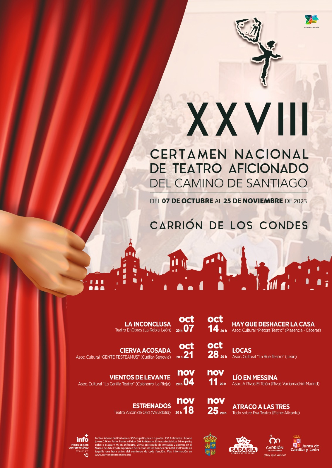 A partir del próximo sábado 7 de octubre dará comienzo en el Teatro Sarabia de Carrión de los Condes el XXVIII Certamen Nacional de Teatro Aficionado del Camino de Santiago