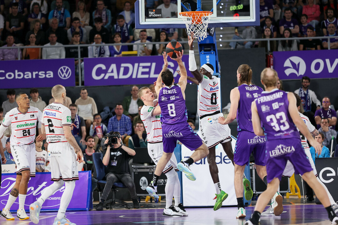 Van der Vuurst fue en esos momentos el paladín de los morados. Era quien llevaba las riendas del ataque, cuando no el ataque en sí. Y casi mejor, porque era raro que el resto lograra, por su precipitación, encestar. 45-58 y tiempo muerto de Guil con cinco minutos aún por jugar en el tercer cuarto. Y posible reacción atajada por una falta en el bloqueo de Benite, muy poco acertado en labores ofensivas.