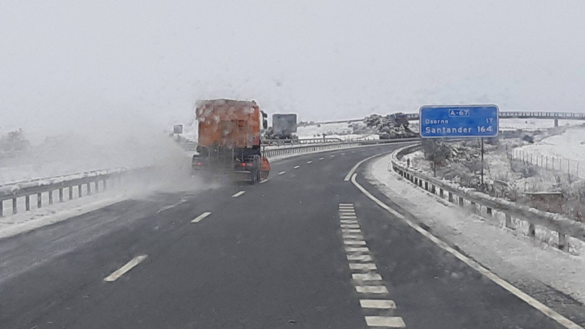 Un total de 65 camiones y vehículos articulados se encuentran embolsados en Aguilar de Campoo ante el nivel rojo existente en la autovía A-67, que une Palencia con Cantabria, que se extiende desde Camesa de Valdivia, en el kilómetro 103, hasta Santa Cruz, en la comunidad autónoma vecina.