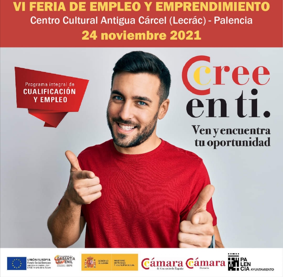 La encontrarás en la VI Feria de Empleo y Emprendimiento, organizada por la Cámara Oficial de Comercio, Industria y Servicios de Palencia en colaboración con el Ayuntamiento de Palencia.