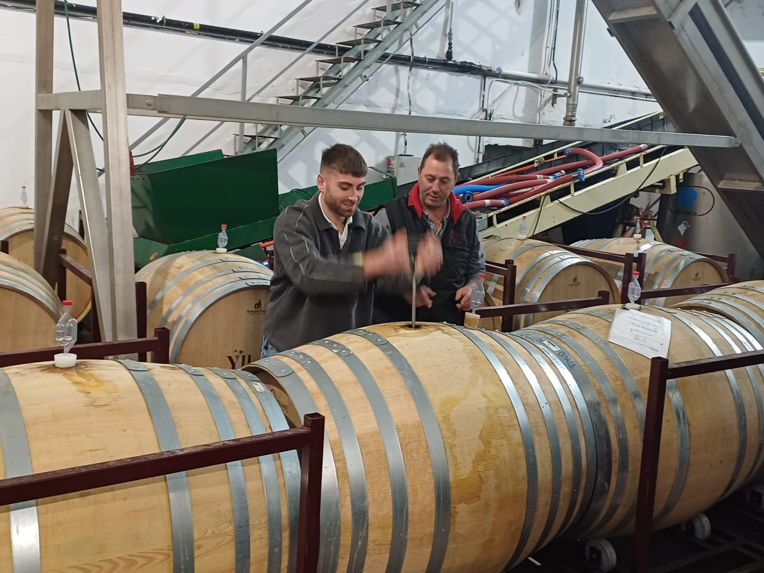 La visita estuvo a cargo del enólogo principal, Ramón Martínez, quien lideró la explicación sobre los procesos de elaboración de los diferentes tipos de vinos producidos en la bodega, tales como los vinos blancos, tintos y frizzante. Durante la visita, se brindaron detalles técnicos y prácticos acerca de las etapas de la vinificación, la importancia de la selección de uvas, las condiciones de fermentación y el envejecimiento, aspectos esenciales que los estudiantes del Grado en Enología y el doble grado Enofood están aprendiendo en su formación académica.