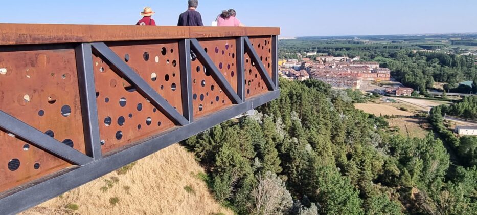 Desde el mirador, se contempla la vasta vega del río Carrión, las tierras que alimentan generaciones y esa red infinita de caminos y senderos que muchos recorrimos de niños en bicicleta, cuando el mundo era pequeño y eterno a la vez.