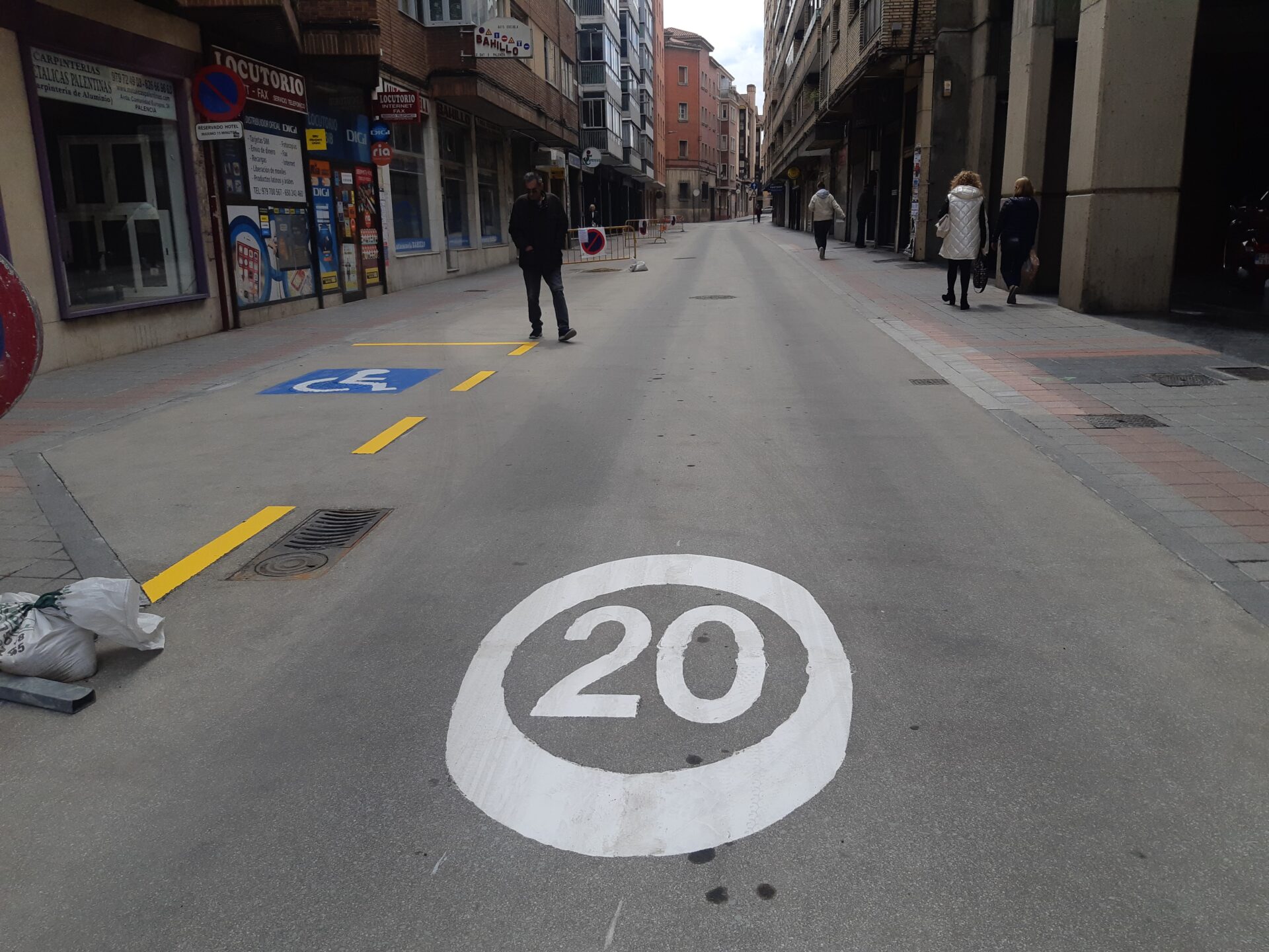 En la jornada de hoy solo se han pintado las flechas del punto de elevación de la calzada, dos señales de limitación de velocidad y la plaza de aparcamiento reservada para personas con movilidad reducida frente a la Biblioteca Pública de Palencia.