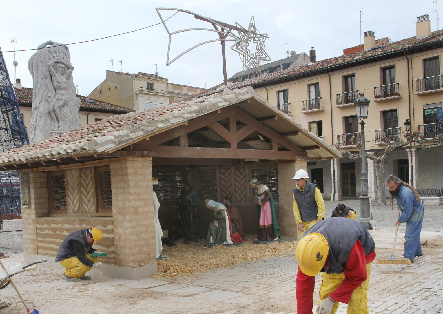 Denuncian a tres jóvenes por ‘instalarse’ en el Belén de la Plaza Mayor de Palencia