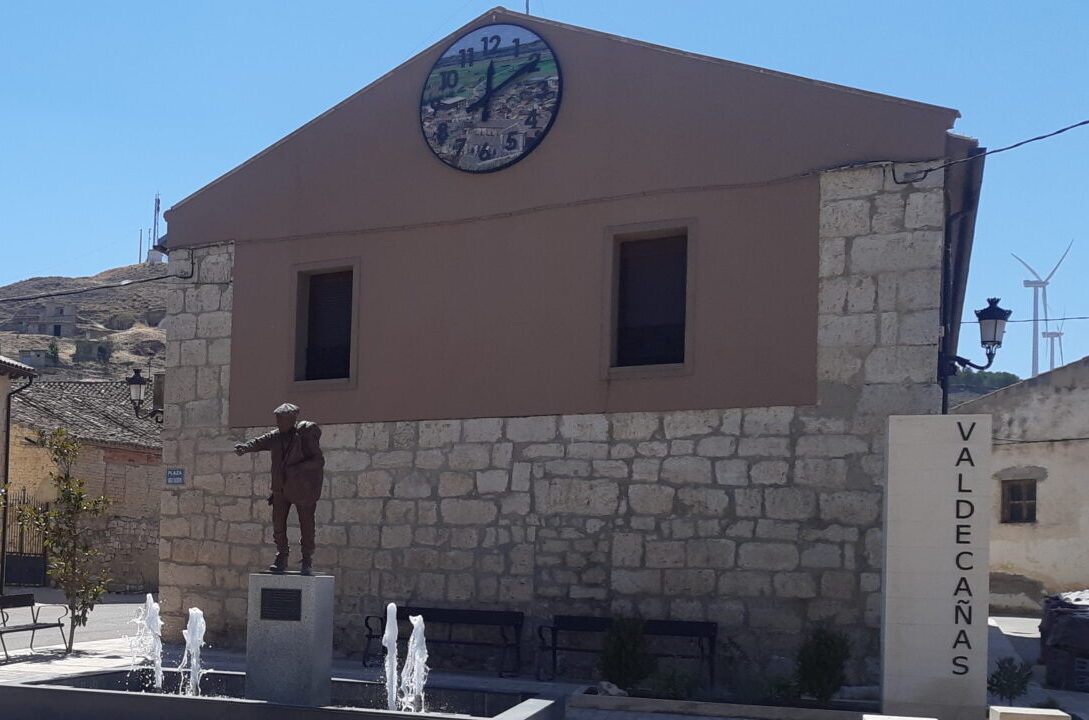 Imagen del reloj de la plaza de Herrera de Valdecañas, que como todos los de España se atrasará esta madrugada una hora. / O. H