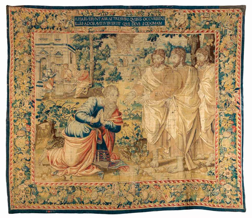 3Abraham y los tres ángeles: Talleres de Bruselas. Segundo tercio del siglo XVI. Tapiz. Seda y lana. S.I. Catedral de Palencia.