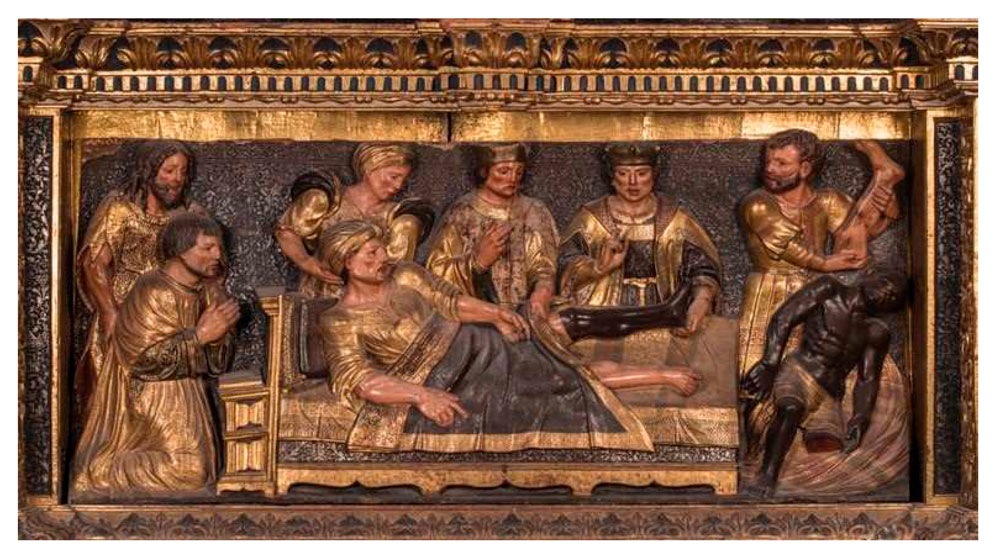 7Milagro de San Cosme y San Damián: Juan Ortiz el Viejo. Hacia 1530-1533. Madera policromada. Capilla de San Gregorio. S. I. Catedral de Palencia