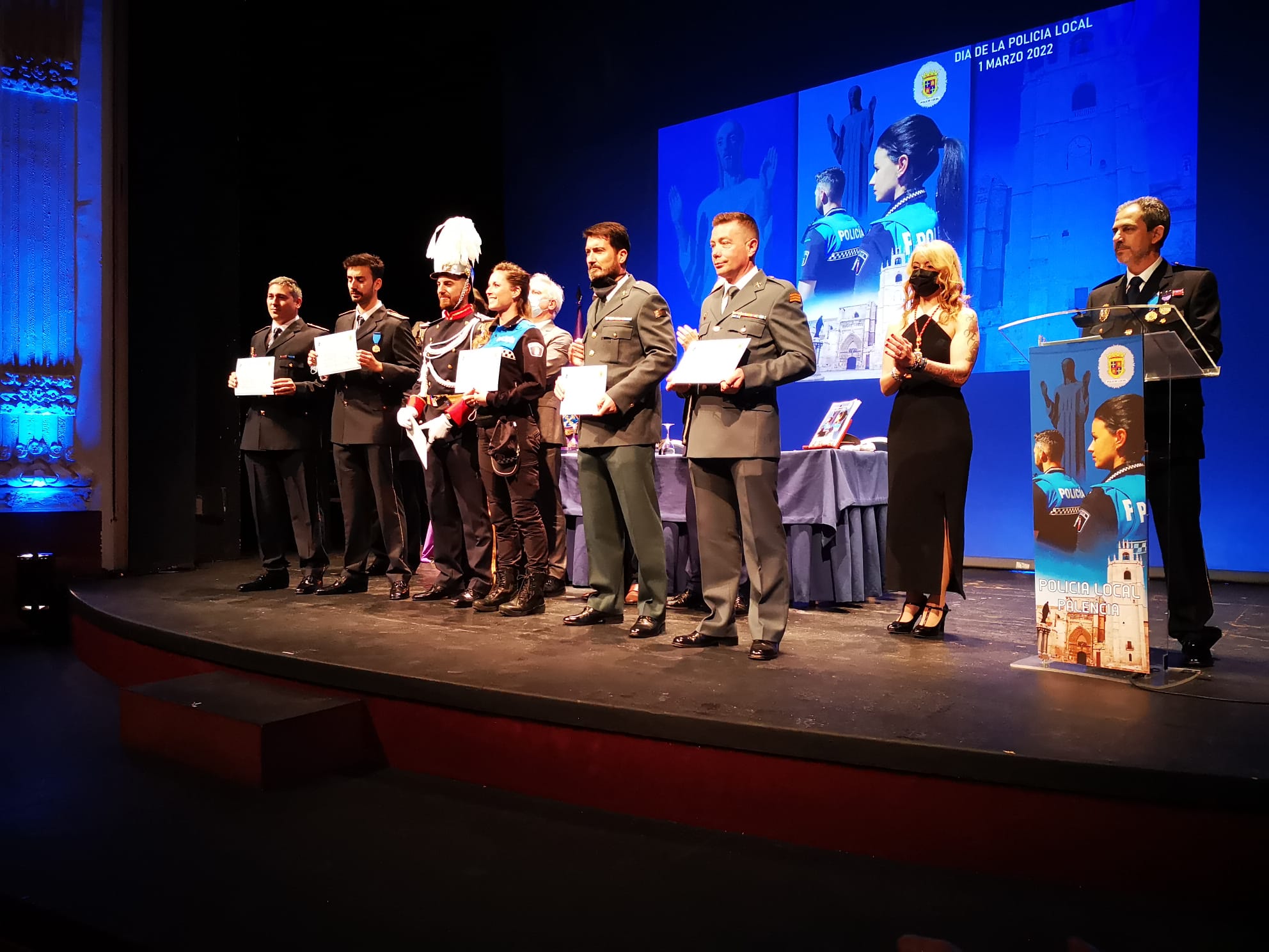 También fueron reconocidos los agentes Eduardo de Dios Moreta y José Ramón Sánchez del Hoyo. Así como se propone “Mención Honorífica” a los policías nacionales Francisco Tomás Llamas de la Fuente, José Luis Castrillo Lobato, Roberto Miguel Bertolín Pérez, Adrián de Mena Santos, Mario González García y José María de la Gala Rodríguez. “En la noche del día 23 de noviembre de 2021, observaron a un vehículo circulando a gran velocidad por las calles de Palencia, comprobando que estaba robado, se inició un seguimiento del mismo, pudiendo comprobar una conducción temeraria por las calles de la ciudad. No sin dificultades, se consiguió interceptar el vehículo robado, iniciando los ocupantes la huida a la carrera, participando todos los Agentes propuestos en la persecución. Pudieron detener al conductor del mismo al que se le imputaron varios delitos contra la seguridad vial, además de un delito de robo de vehículo, teniendo también numerosos antecedentes y en el momento de la detención, posesión de drogas.  Esta actuación sobresaliente de los agentes propuestos, pone en valor actitudes como la inmediatez en la respuesta, la congruencia en los medios y la eficacia ante la comisión de un hecho delictivo, además de reforzar la coordinación y el trabajo con otras Fuerzas y Cuerpos de Seguridad”.