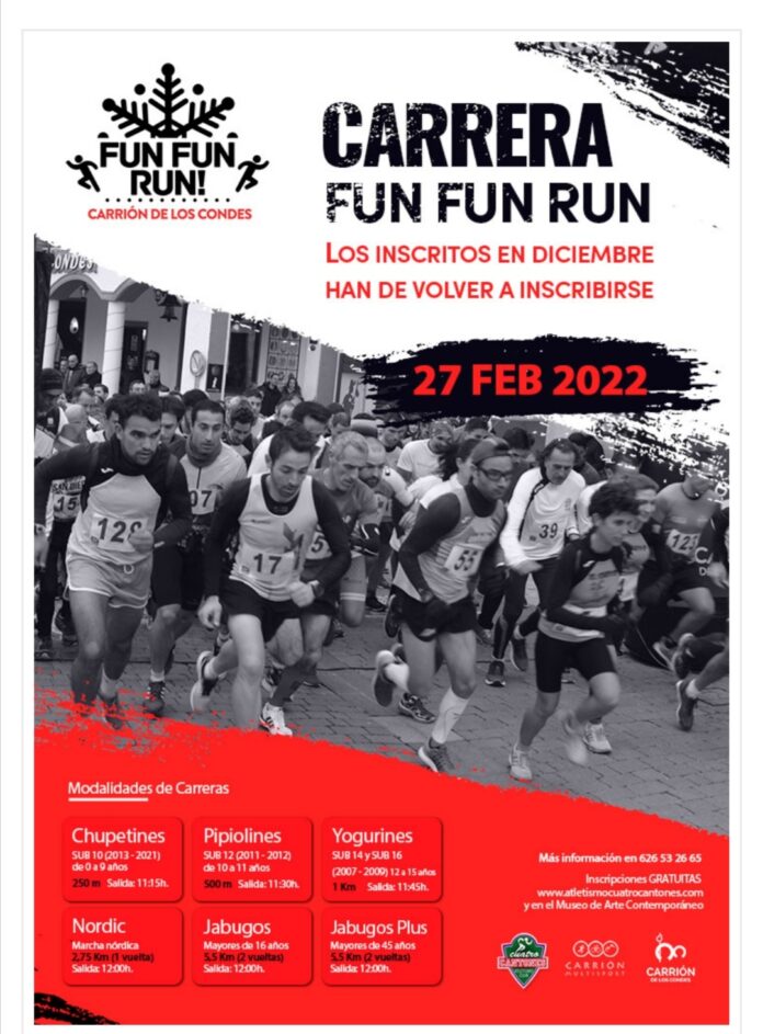 El Ayuntamiento de Carrión de los Condes, junto al Club Atletismo Cuatro Cantones y Carrión Multisport, organiza una nueva edición de la Fun Fun Run, una carrera navideña que por motivos del COVID se suspendió.