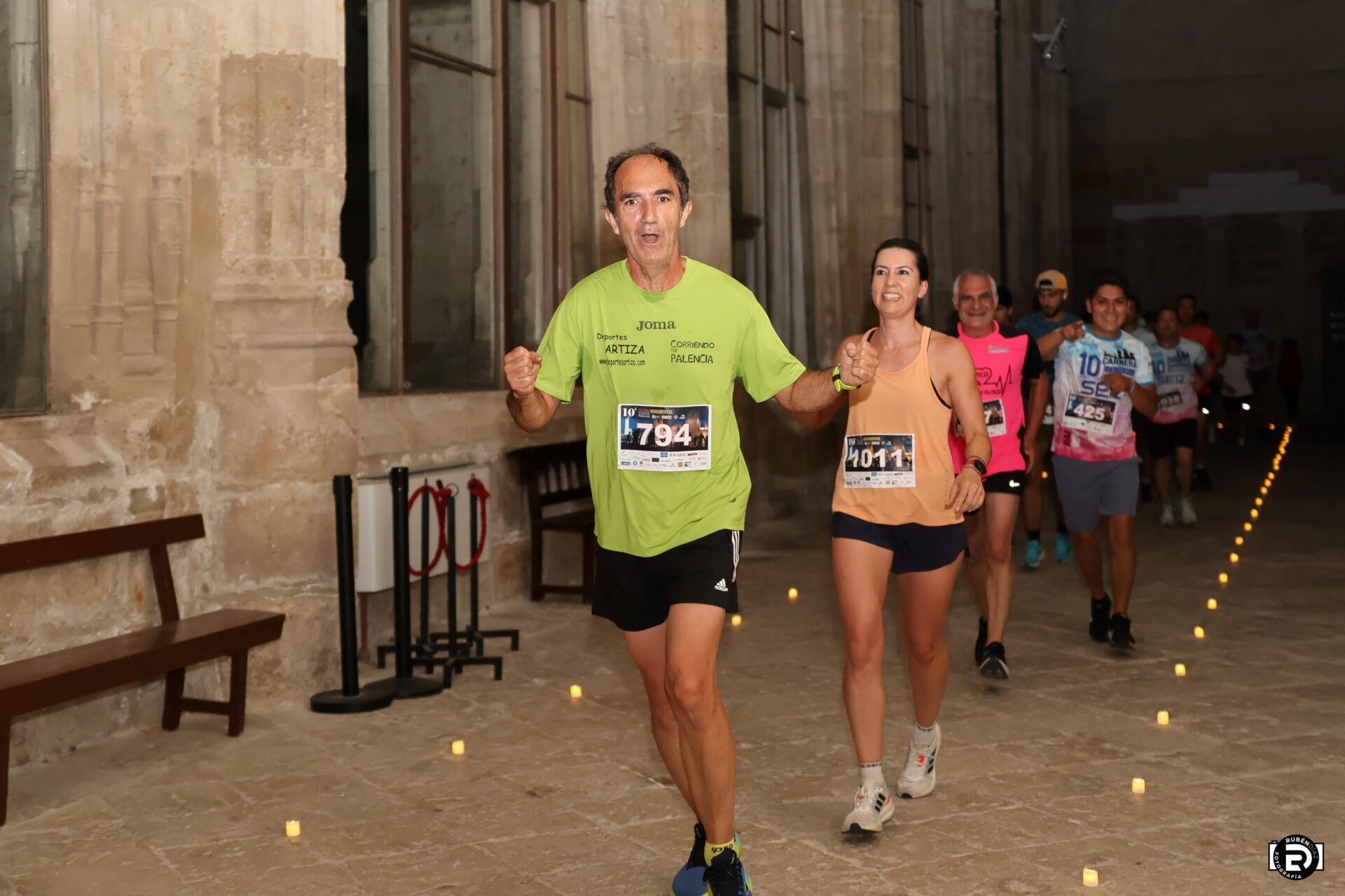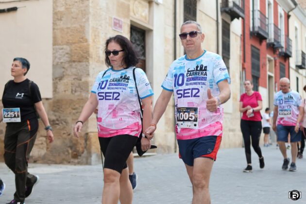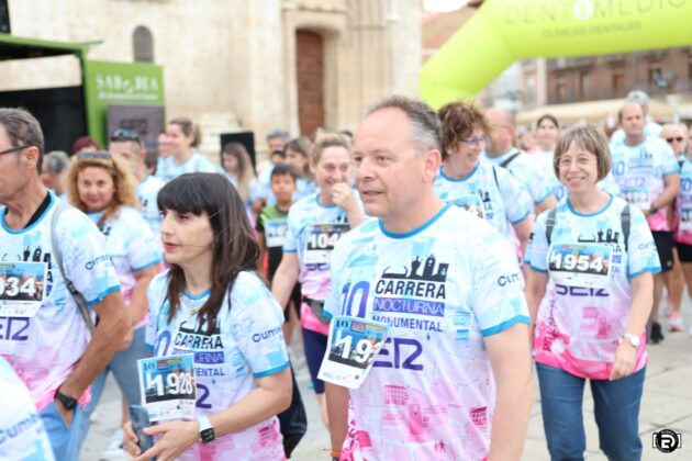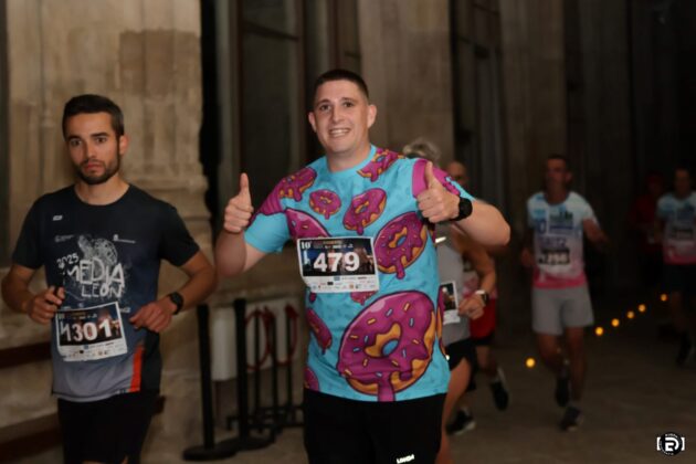 Más de 2.000 participantes se dieron cita en esta edición especial, que conmemoraba el décimo aniversario de la carrera nocturna e incorporaba por primera vez una marcha caminando, pensada para aquellos que querían disfrutar del recorrido sin correr. La Marcha Monumental partió a las 21:30 horas desde la Plaza de la Inmaculada, con un circuito de 3.850 metros, mientras que la Carrera Nocturna comenzó a las 22:30 horas desde la Avenida Portugal, junto al Estadio Municipal La Balastera, con un recorrido de 6.850 metros que incluía un paso por el interior del Claustro de la Catedral, una experiencia única que se repitió por segundo año consecutivo.