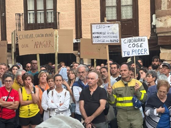 Durante el acto en la Plaza Mayor de Cervera, se ha leido también un manifiesto, y se han escuchado las experiencias y vivencias de quienes luchan contra el fuego que, por cierto, 15 días después de declararse aún no se ha dado por apagado en el incendio forestal de Resoba.
