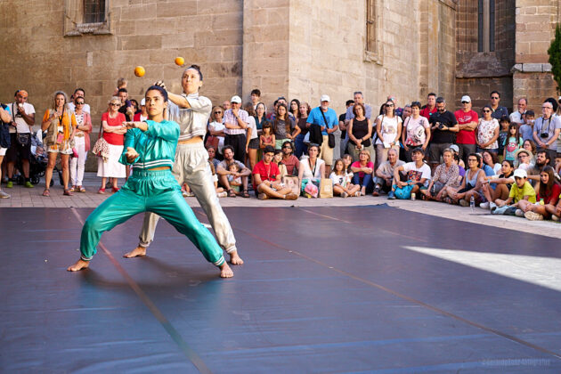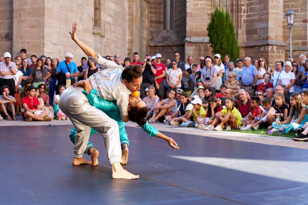 A las 20 horas, en la plaza España, comenzará el siguiente espectáculo, titulado Latas, que pondrá en escena D’Click. Esta compañía fue creada en el año 2010 y ha recorrido gran parte del mundo con sus creaciones. Procedente de Aragón, esta agrupación mezcla diversos lenguajes propios del circo, como las acrobacias y el mástil chino, con una dramaturgia teatral llena de imaginación, de poética, de gestualidad y de mucho sentido del humor.