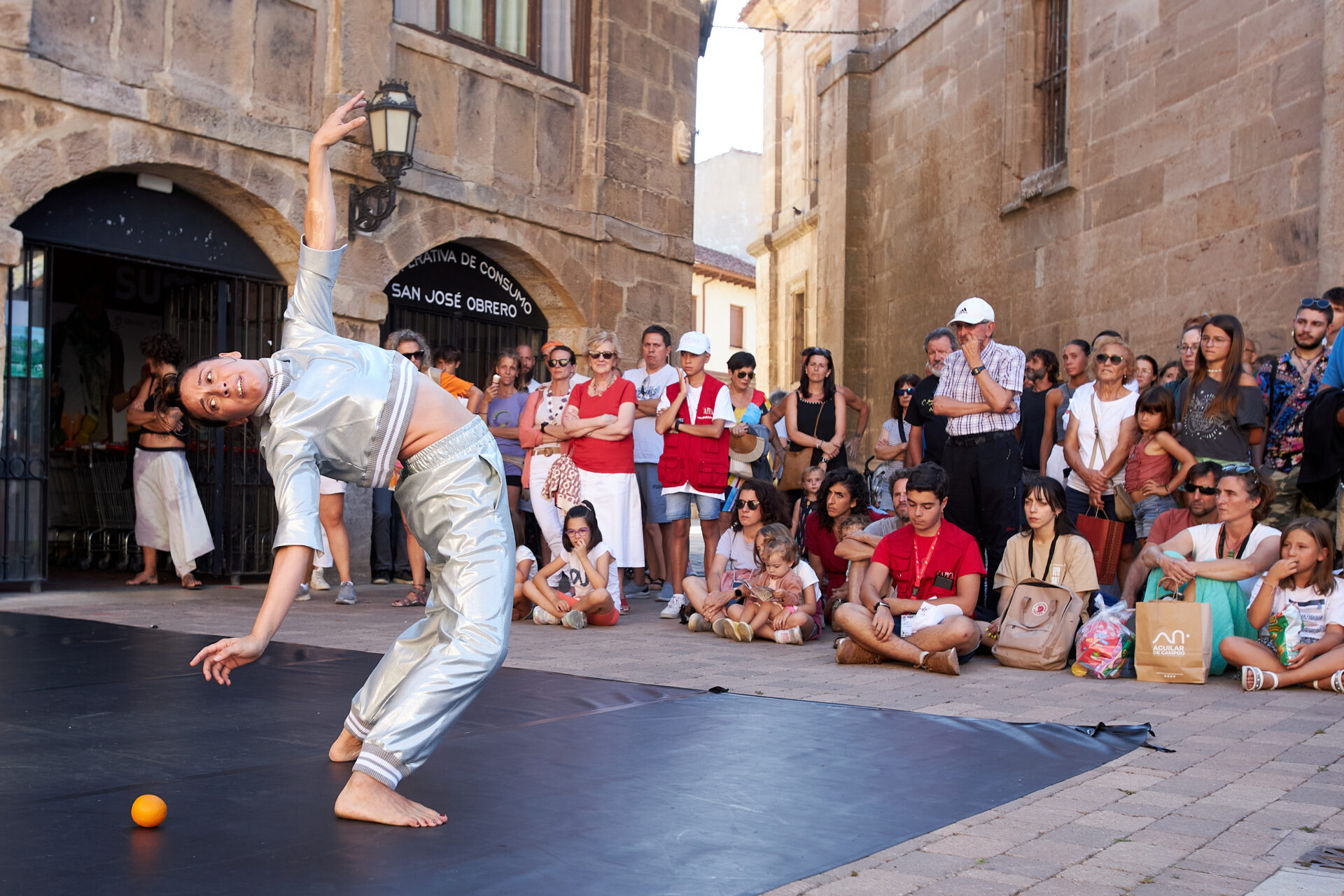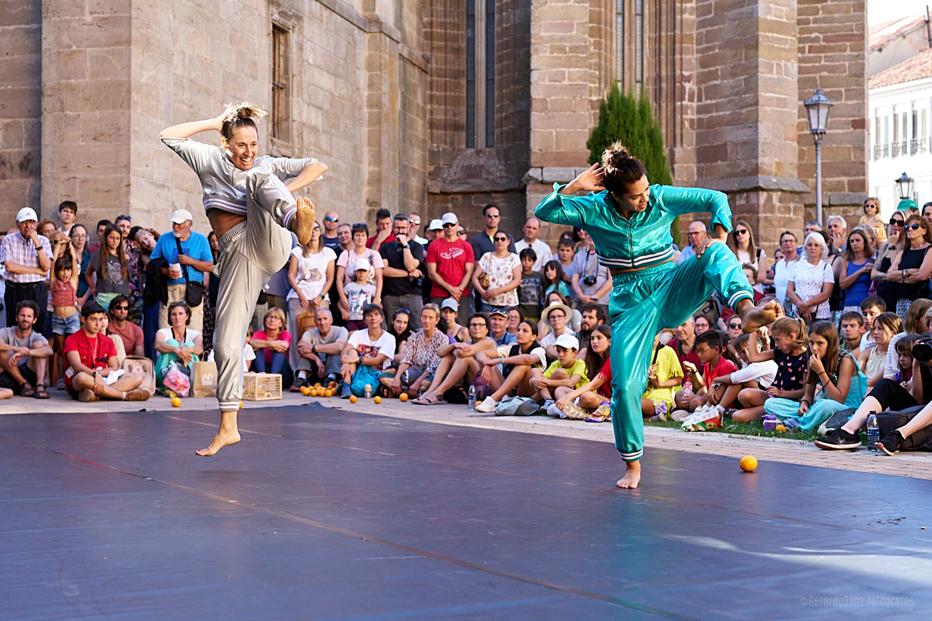 La encargada de abrir será la gallega Colectivo Glovo con su espectáculo Alleo, que comenzará a las 12.30 horas en la Plaza de San Lorenzo. Esta compañía, creada en 2016 ha recorrido diferentes países como España, Portugal, Italia o México, entre otros. Ha recibido menciones en festivales como Corto In Danza (Italia), así como el Primer Premio en el Certamen Coreográfico Internacional de Burgos & Nueva York. Colectivo Glovo volverá a actuar por la tarde, a las 18.30 horas, pero en este caso el escenario será el mirador de Santa Cecilia.