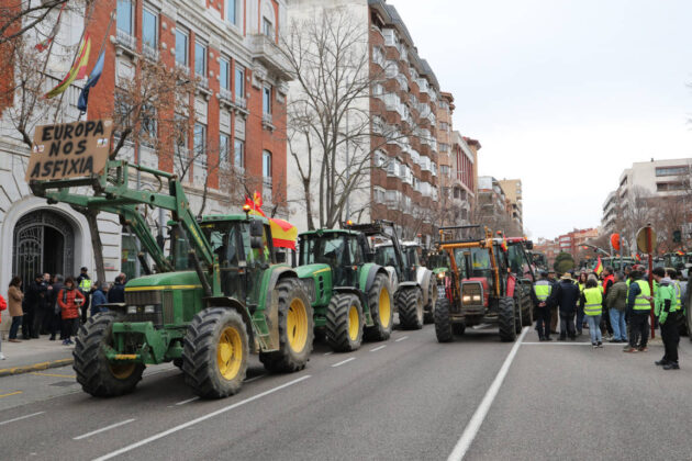 Los tractores se han dejado notar hoy en el centro de la ciudad. Principalmente en las principales vías de comunicación interna como Casado del Alisal donde los cuatro carriles de la misma quedaban ocupados por los vehículos agrícolas.