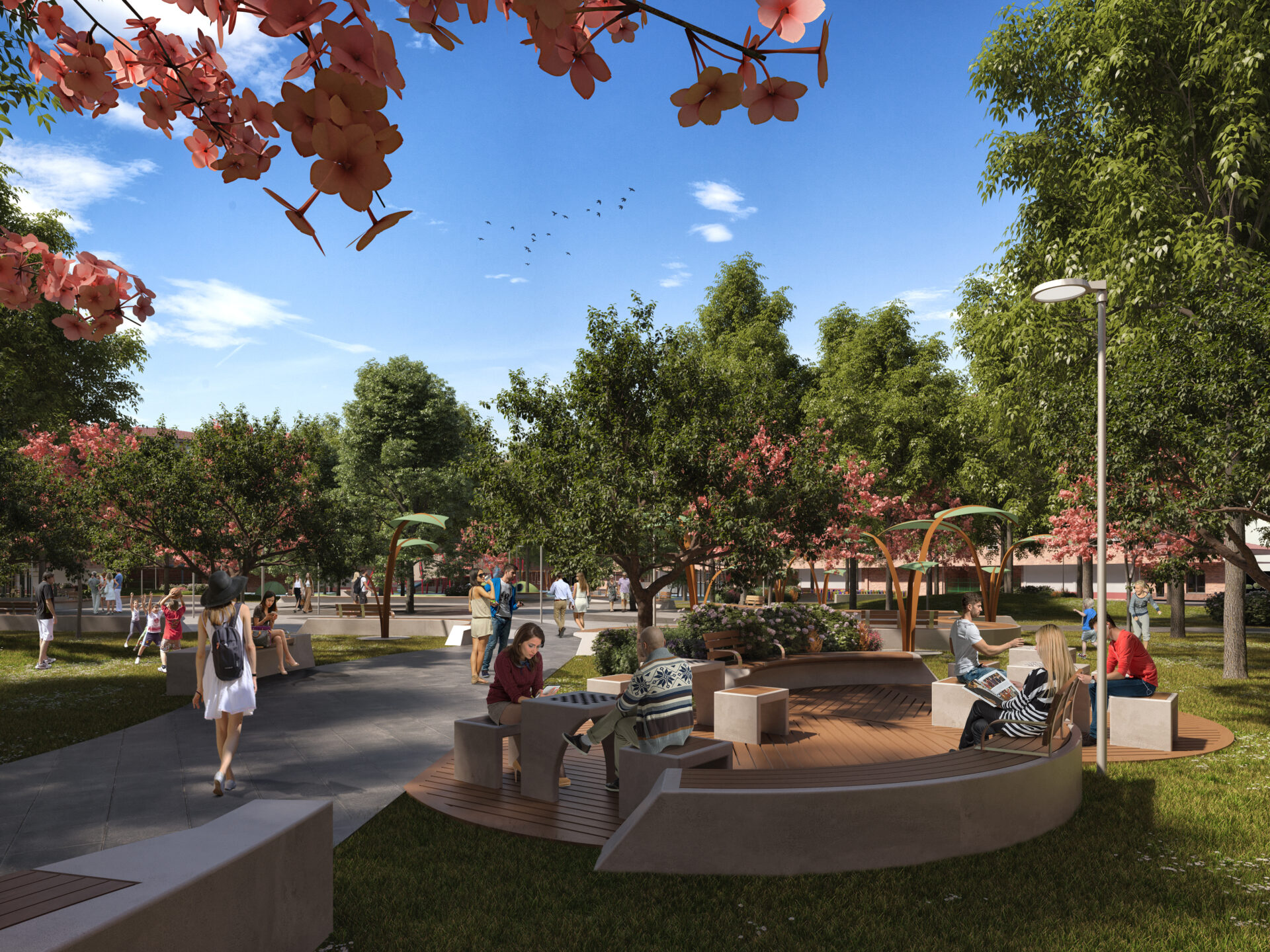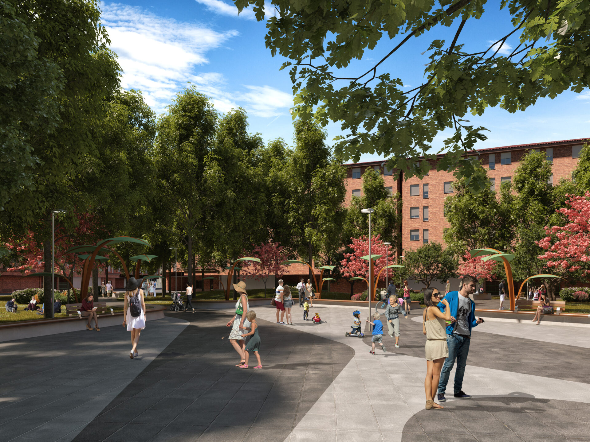 El proyecto de regeneración y renaturalización transformará la plaza en un espacio más accesible y funcional, incorporando un nuevo parque infantil y áreas verdes