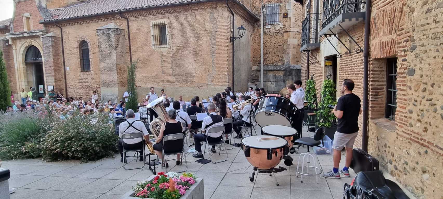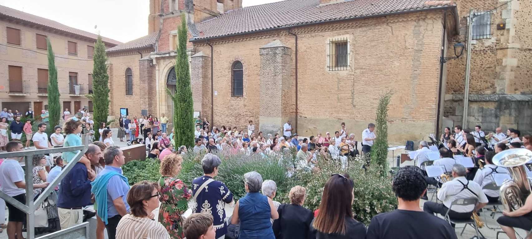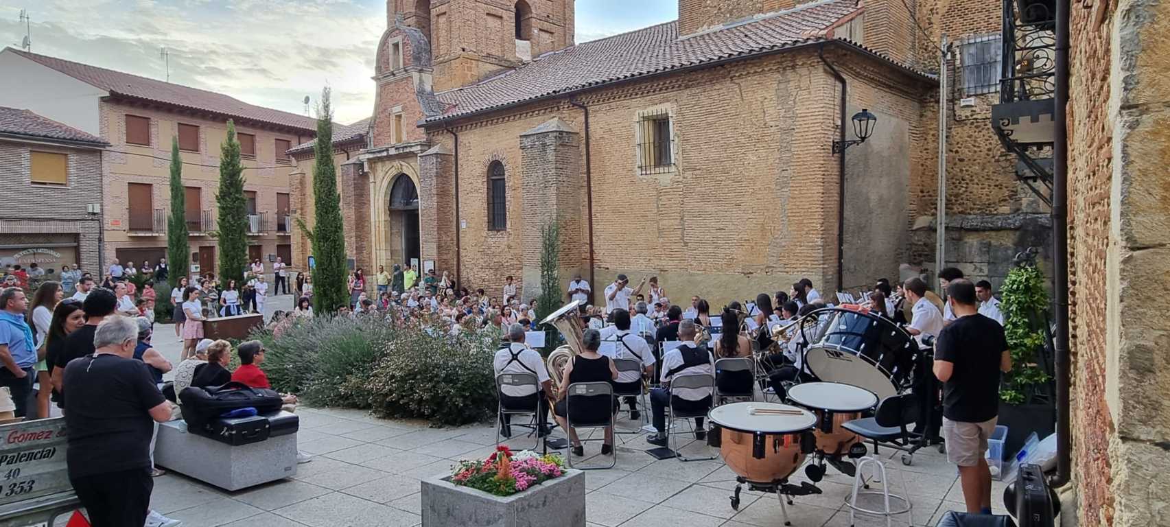 La Asociación Musical Saldañesa logró congregar a un gran número de vecinos en la Plaza de San Pedro de Saldaña, donde ofreció un concierto ante su público. La plaza se llenó por completo.