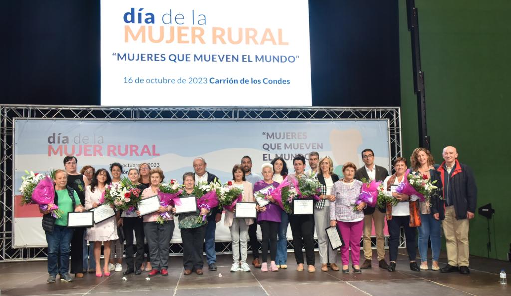 Carrión de los Condes ha acogido hoy la celebración del Día de la Mujer Rural en la provincia de Palencia con el acto institucional en el que se ha reconocido la labor de las mujeres que viven en el medio rural, su implicación con él y la importancia que tienen en la vida en los pueblos palentinos. De hecho, el lema elegido para esta edición es “Mujeres que mueven el mundo”.