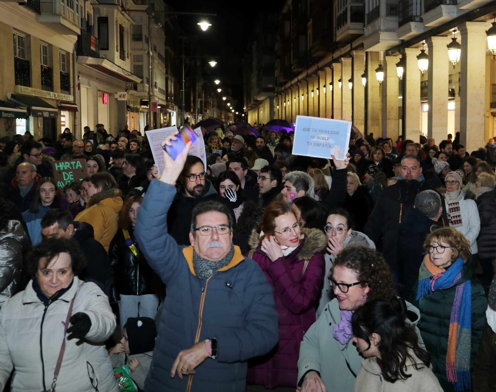 Y en la calle, miles de personas tomaron parte de la manifestación que recorrió el centro de la capital palentina convocada por la Plataforma por la Defensa de los Derechos de las Mujeres en Palencia.