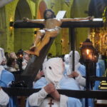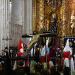 Los portantes sacan a Jesús Crucificado a la Plaza de San Francisco después de haberse realizado el acto de Las Cinco Llagas bajo el techo de San Francisco. / Óscar Herrero