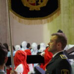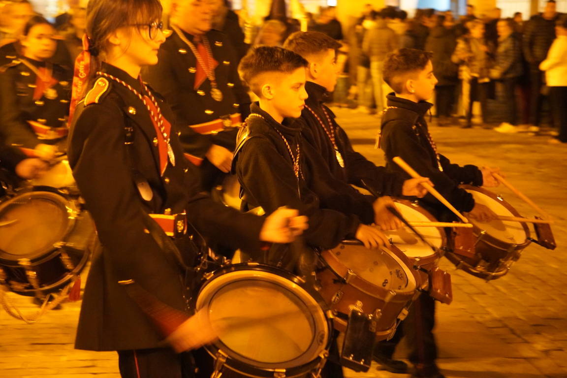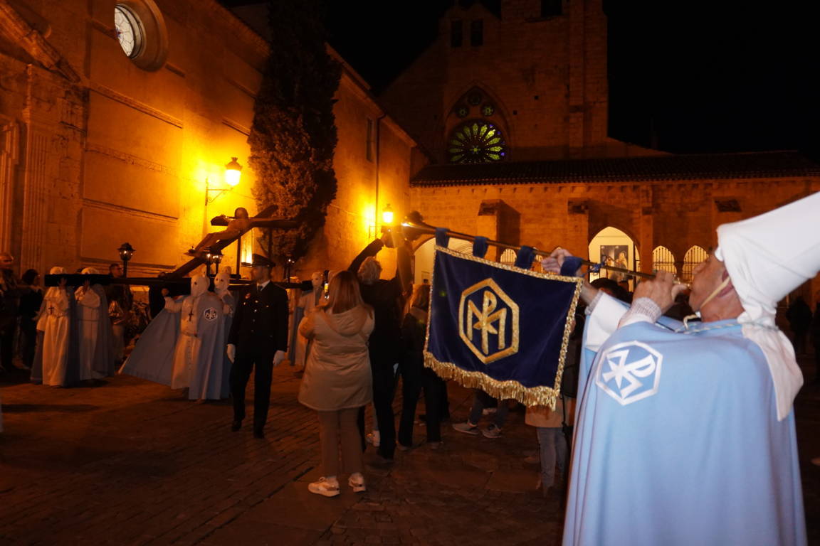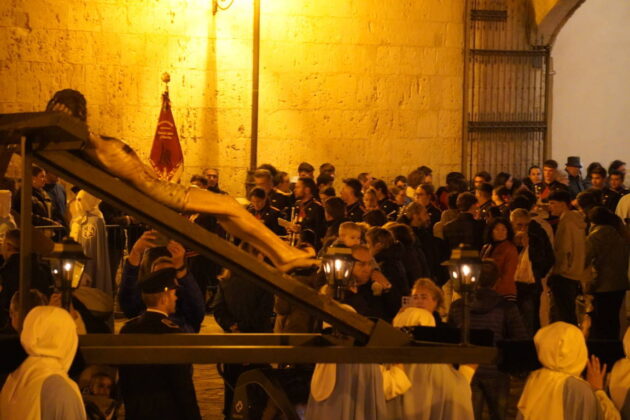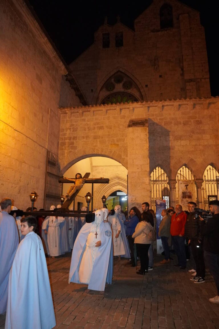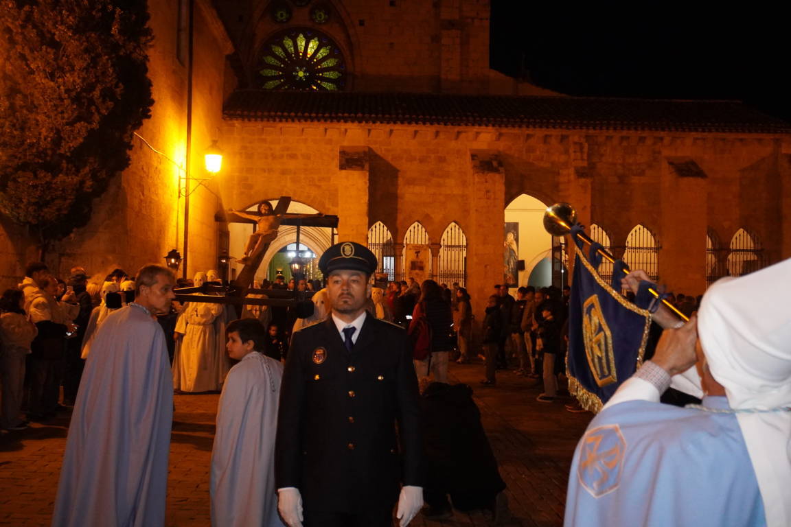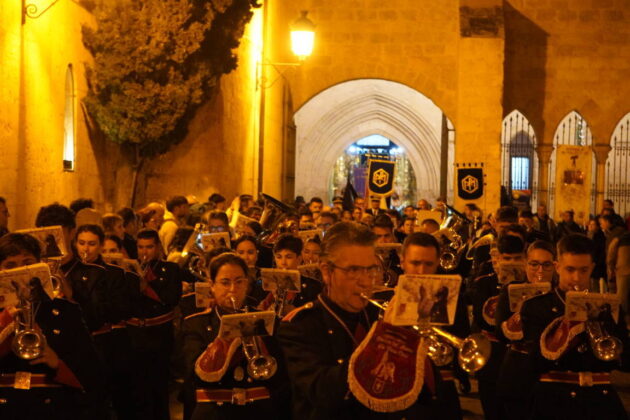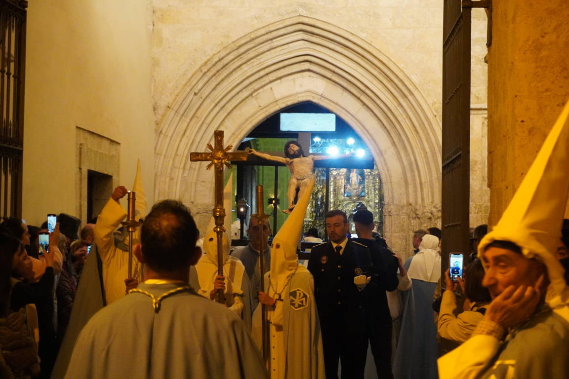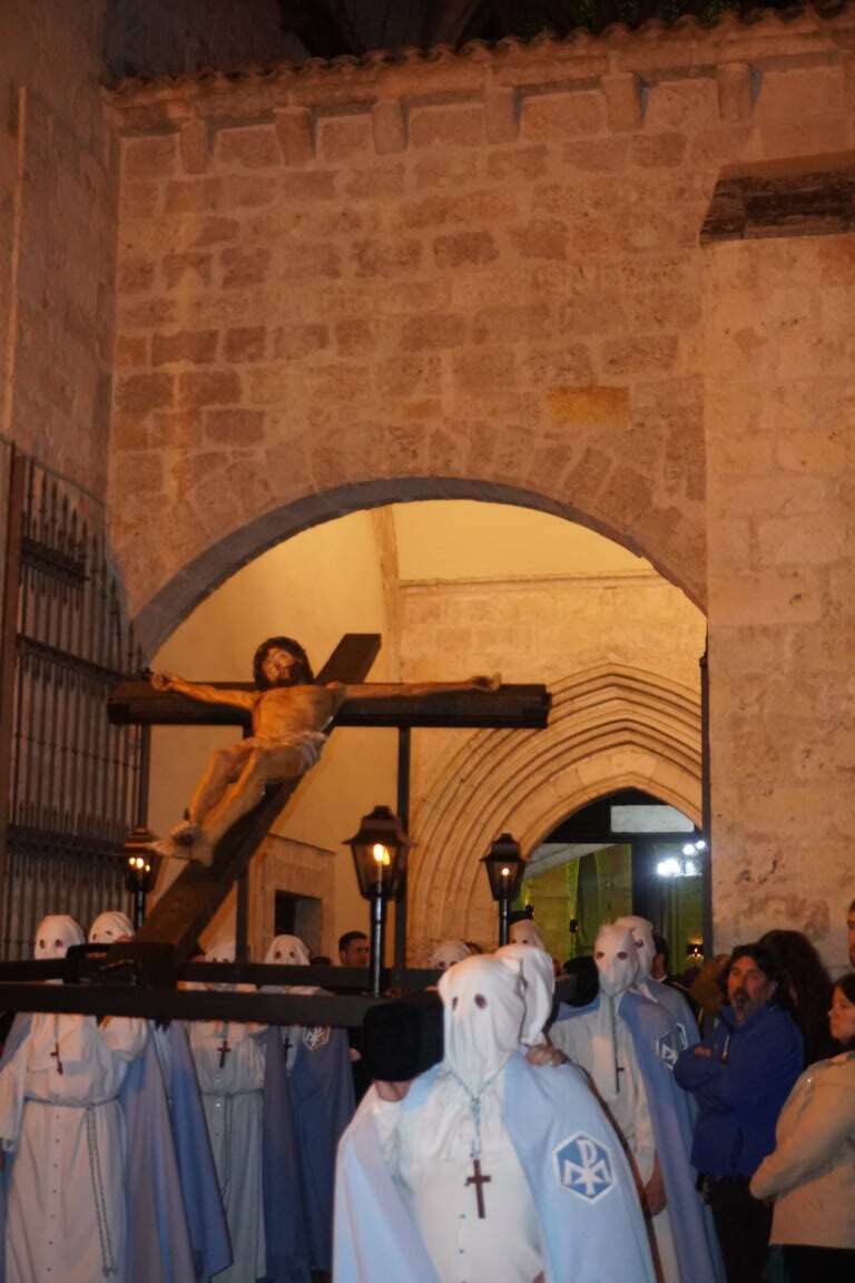 Es cierto que la talla barroca hubo que admirarla a más distancia, pero también que el toque de tararú y, sobre todo, la soberbia participación de la Banda de la Cofradía de la Oración del Huerto y de la Vera Cruz de Medina del Campo, crearon un ambiente que, de otra forma, no se hubiera podido reproducir. Si algo positivo ha tenido la suspensión de la procesión ha sido poder escuchar a la banda vallisoletana en un recinto como San Francisco.