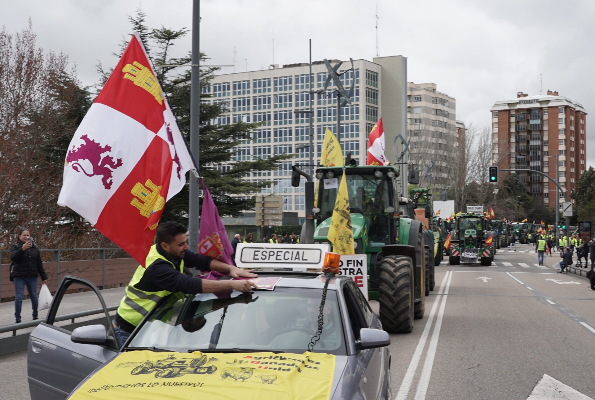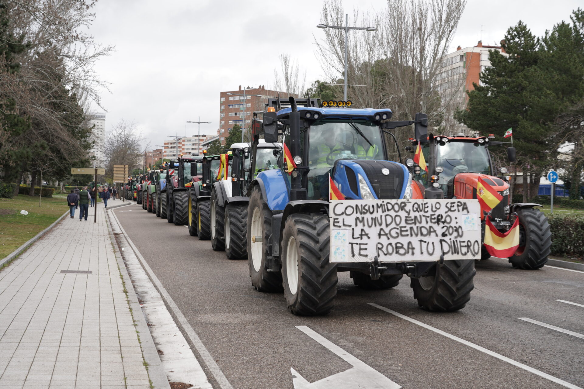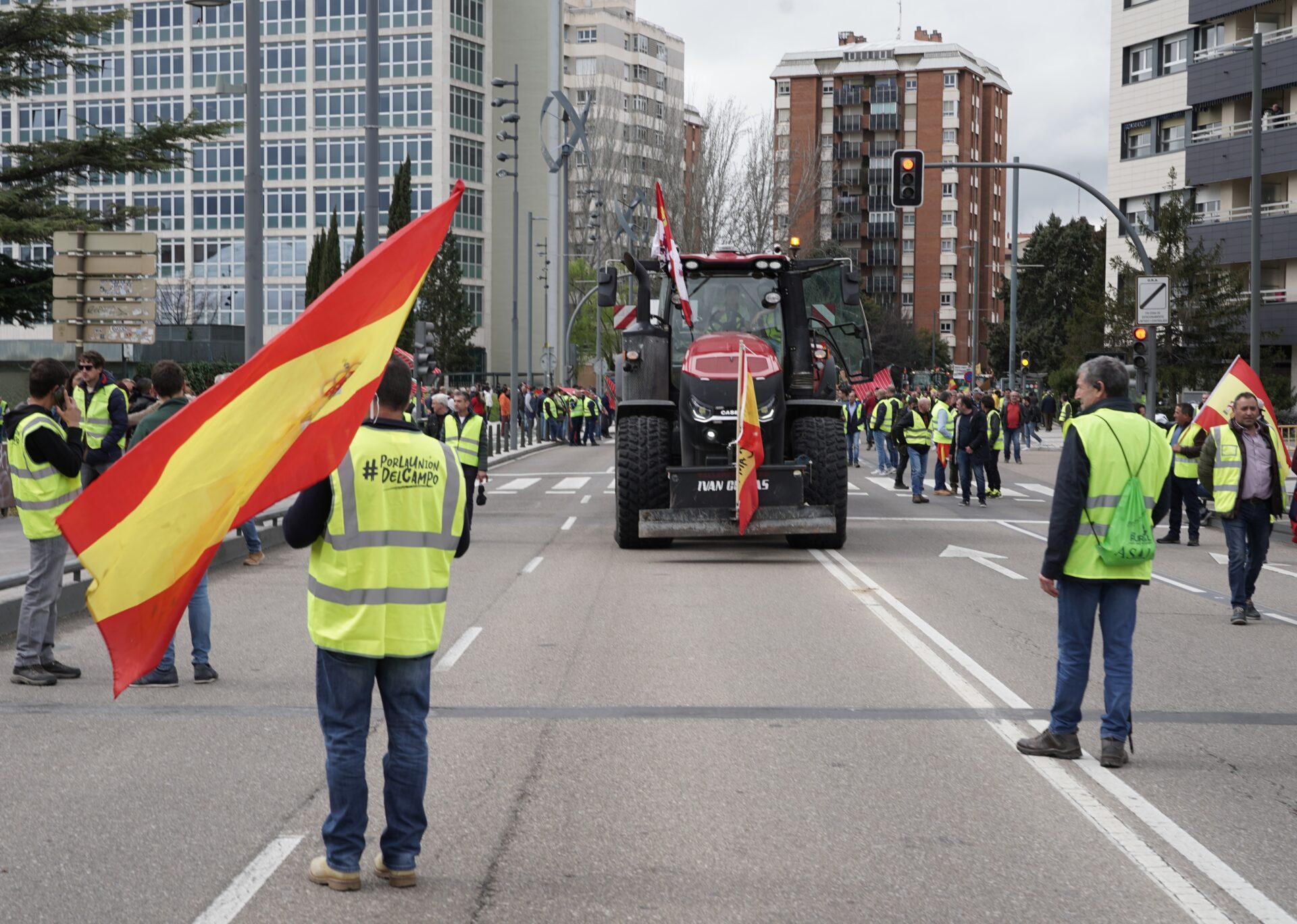 Más de medio millar de tractores de toda Castilla y León circulan por las principales vías de la ciudad para reclamar acuerdos que reduzcan la carga medioambientalista de la PAC y fondos para hacer cumplir la Ley de la Cadena Alimentaria