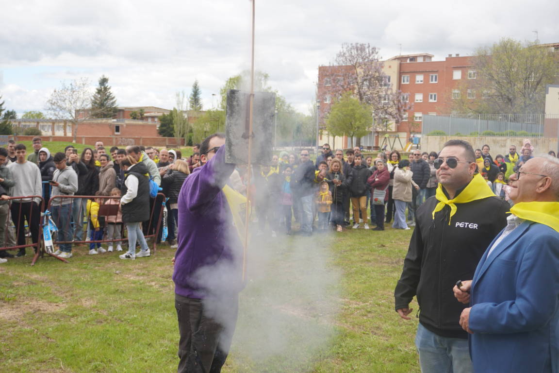 Una semana más tarde de cuando debía haberse celebrado. De hecho, hoy el Barrio del Cristo debía estar esperando la lluvia de pan y quesillo. Pero el calendario dejó tan postrera la Semana Santa que las Fiestas del Cristo han comenzado hoy. A eso de las 13,30 horas es cuando el pregonero de las fiestas, José Luis Rubio, ha encendido el chupinazo con el que, desde el cielo se anunciaba a la ciudad que el popular barrio, a los pies del Cerro del Otero, iniciaba la celebración de Santo Toribio (la fecha fue el pasado miércoles).