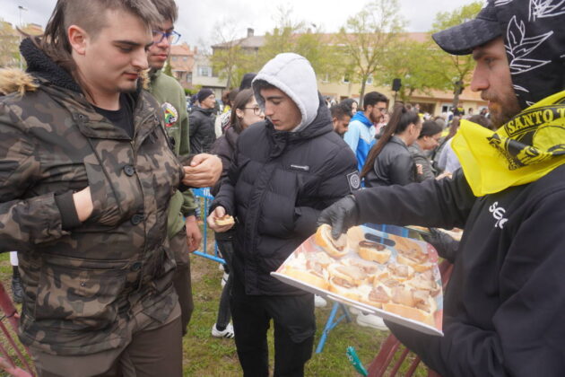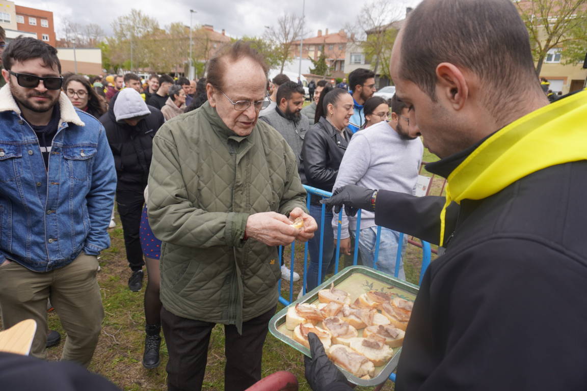 Y como no puede haber fiesta sin yantar, justo detrás del escenario, colocado en el Camino de Santa Eufemia, se estaban preparando 80 kilos de panceta que fueron repartidos entre los centenares de personas que se acercaron al comienzo oficial de las Fiestas del Cristo. Una larga cola, para simbolizar el final de la Semana Santa y el comienzo del calendario de fiestas en los barrios de Palencia. Aunque, todo sea dicho, Santo Toribio, más que la fiesta de un solo barrio, es la celebración de toda la ciudad.
