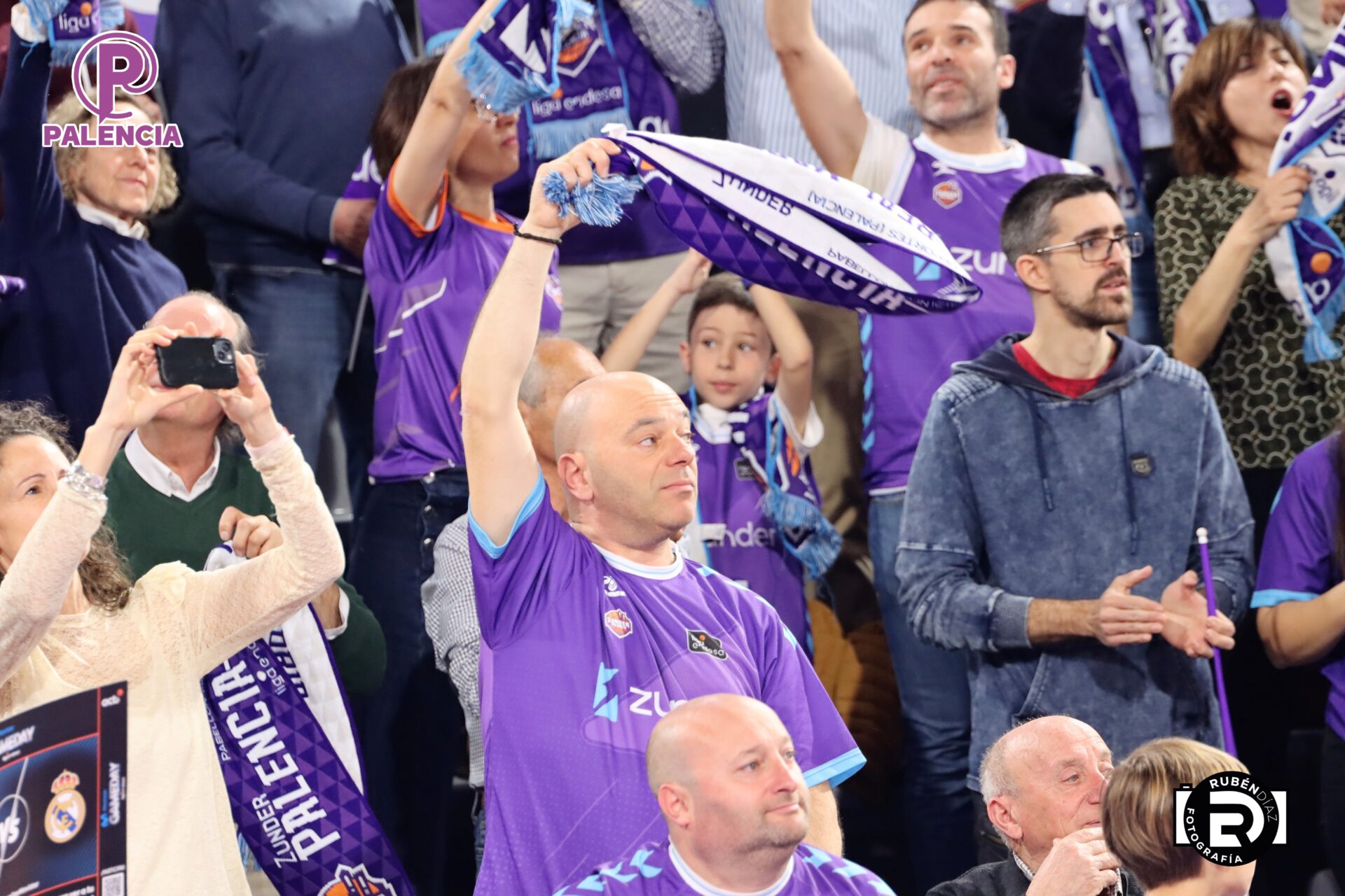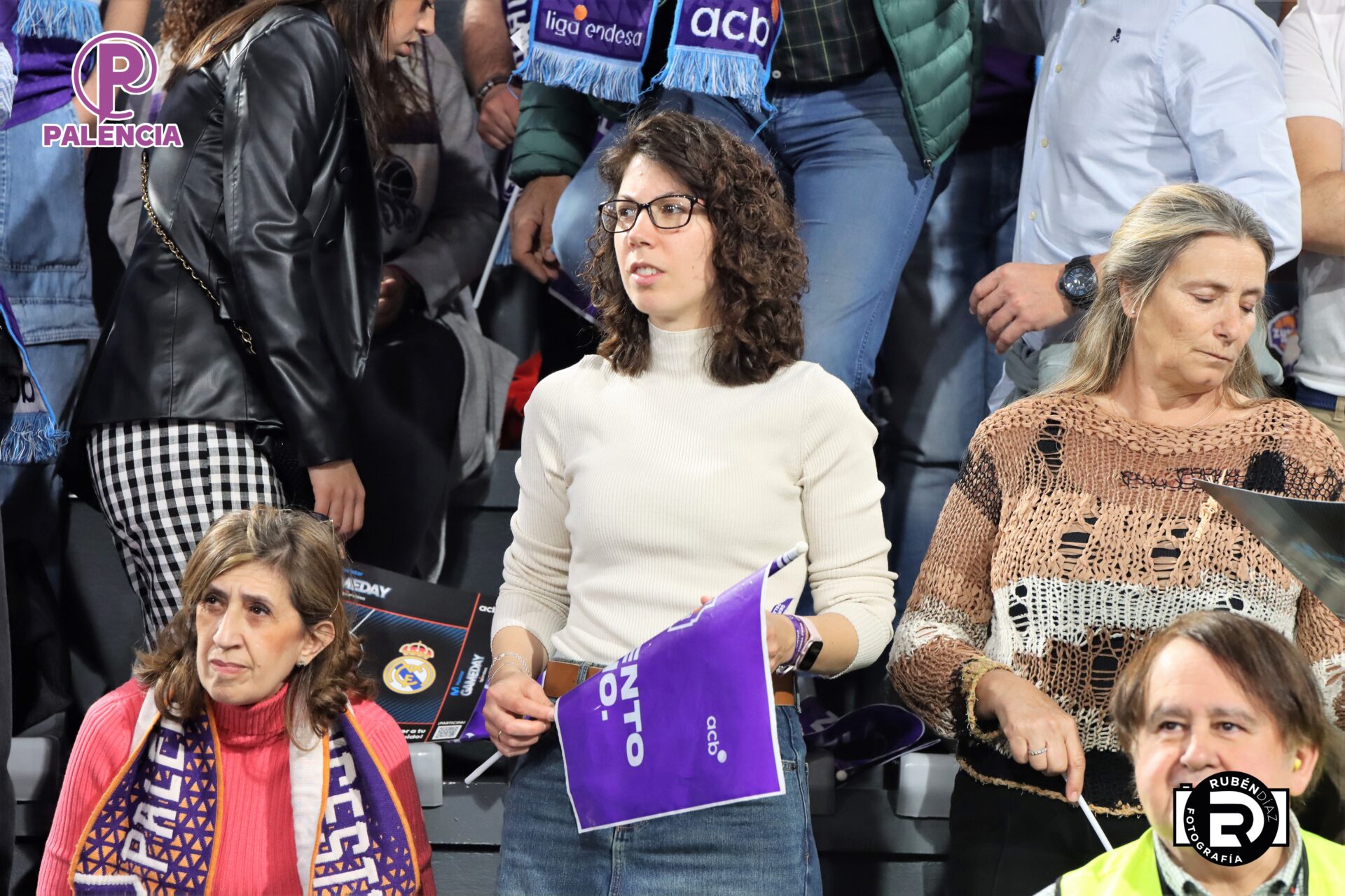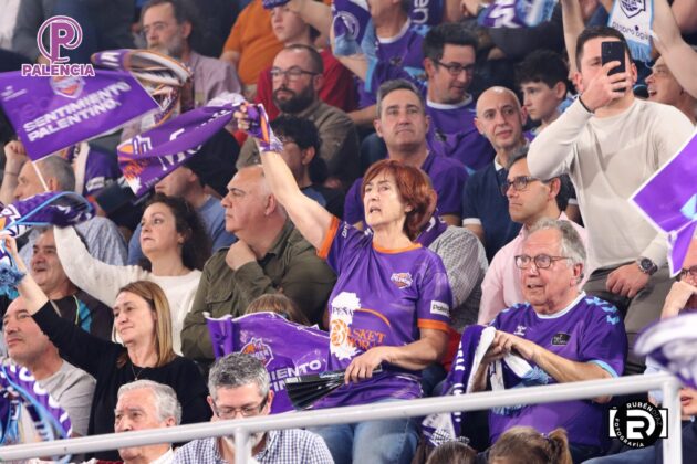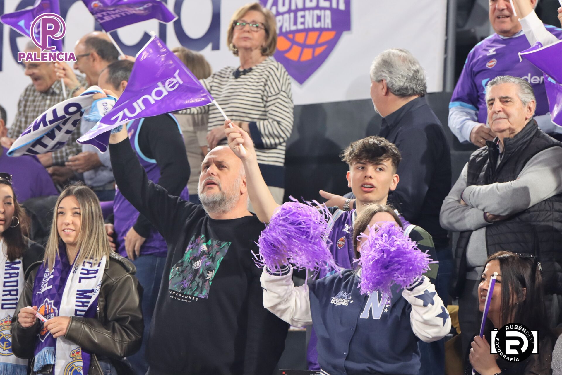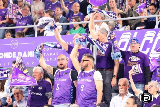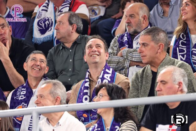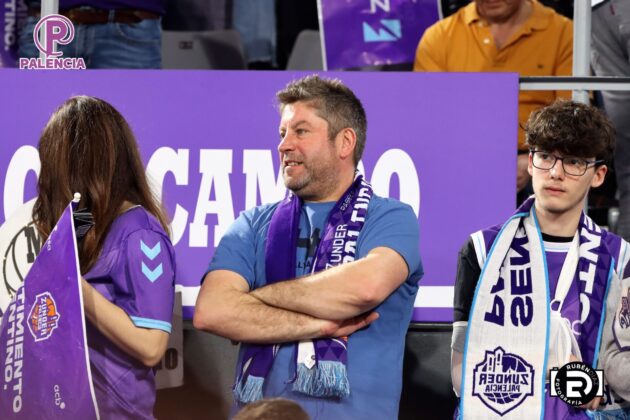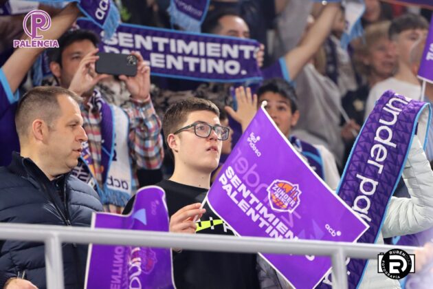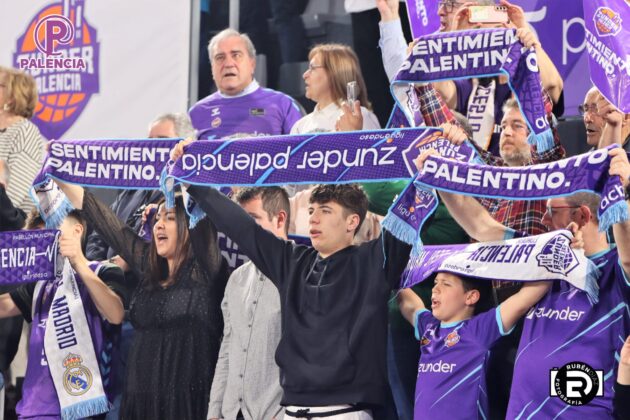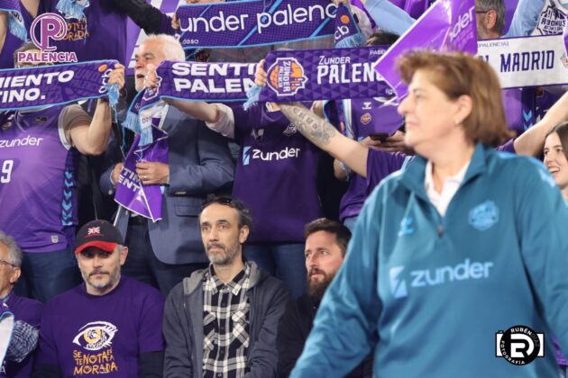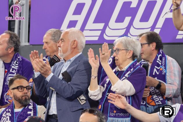 Tan especial era la jornada en las gradas que los aficionados, palentinos, pero también varios centenares de madrileños, se encontraron unos aplaudidores de la ACB, y también de banderas con los colores morados.