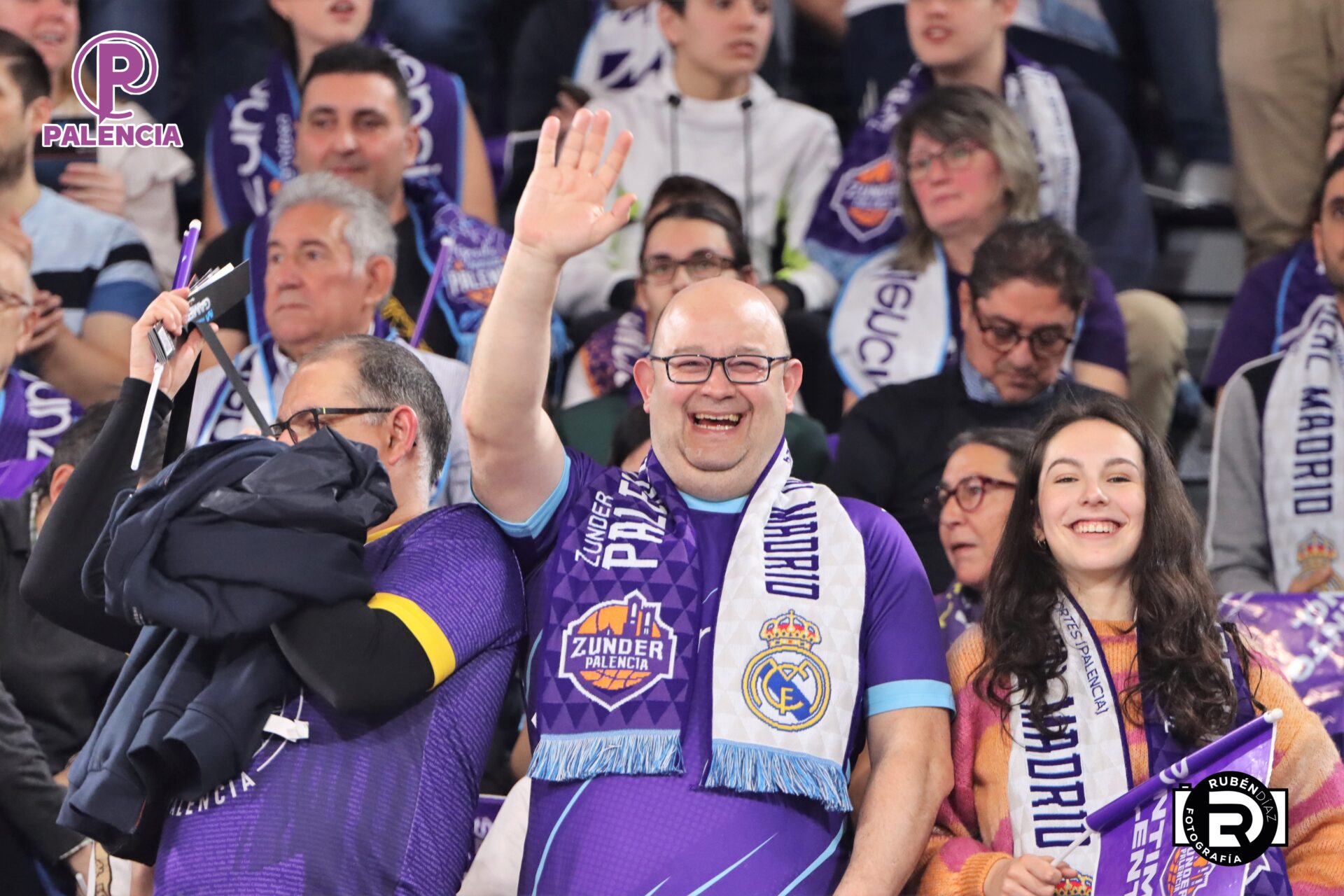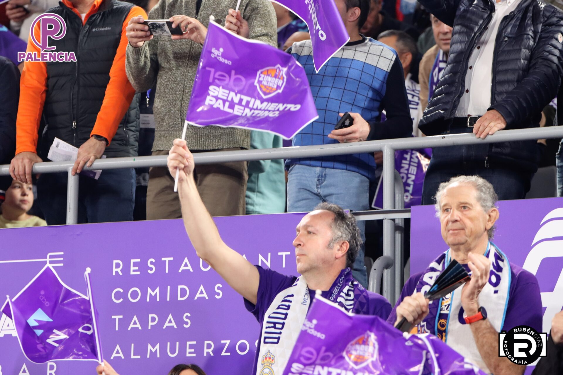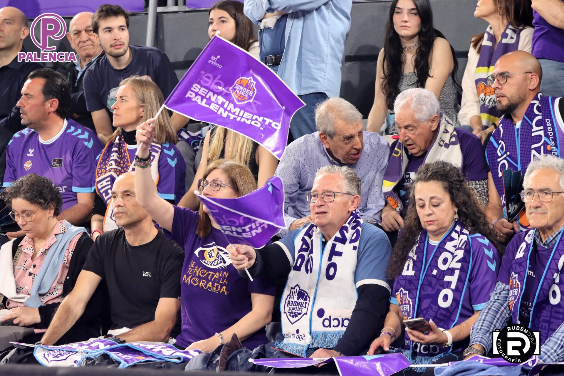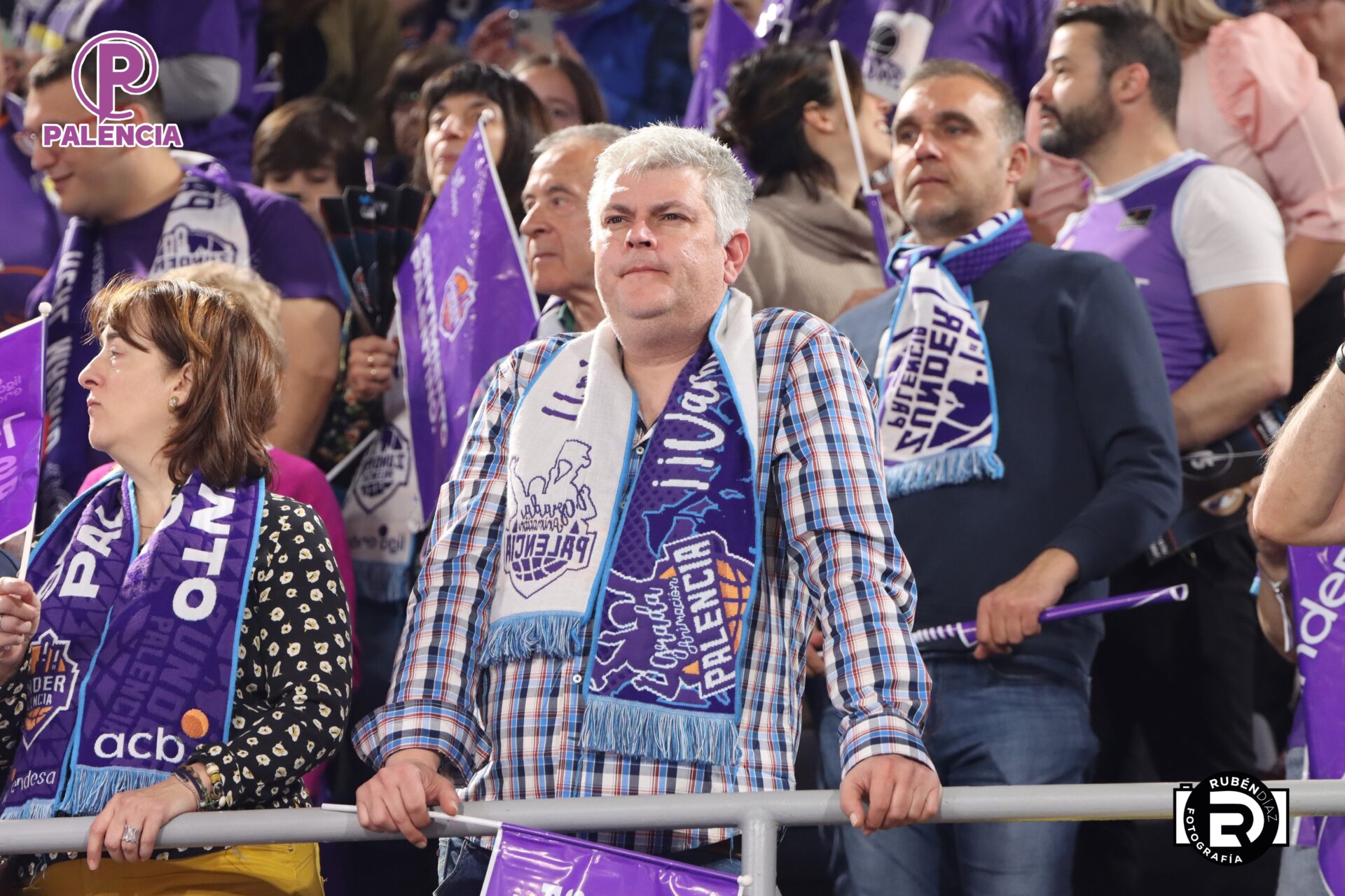 Tan especial era la jornada en las gradas que los aficionados, palentinos, pero también varios centenares de madrileños, se encontraron unos aplaudidores de la ACB, y también de banderas con los colores morados.