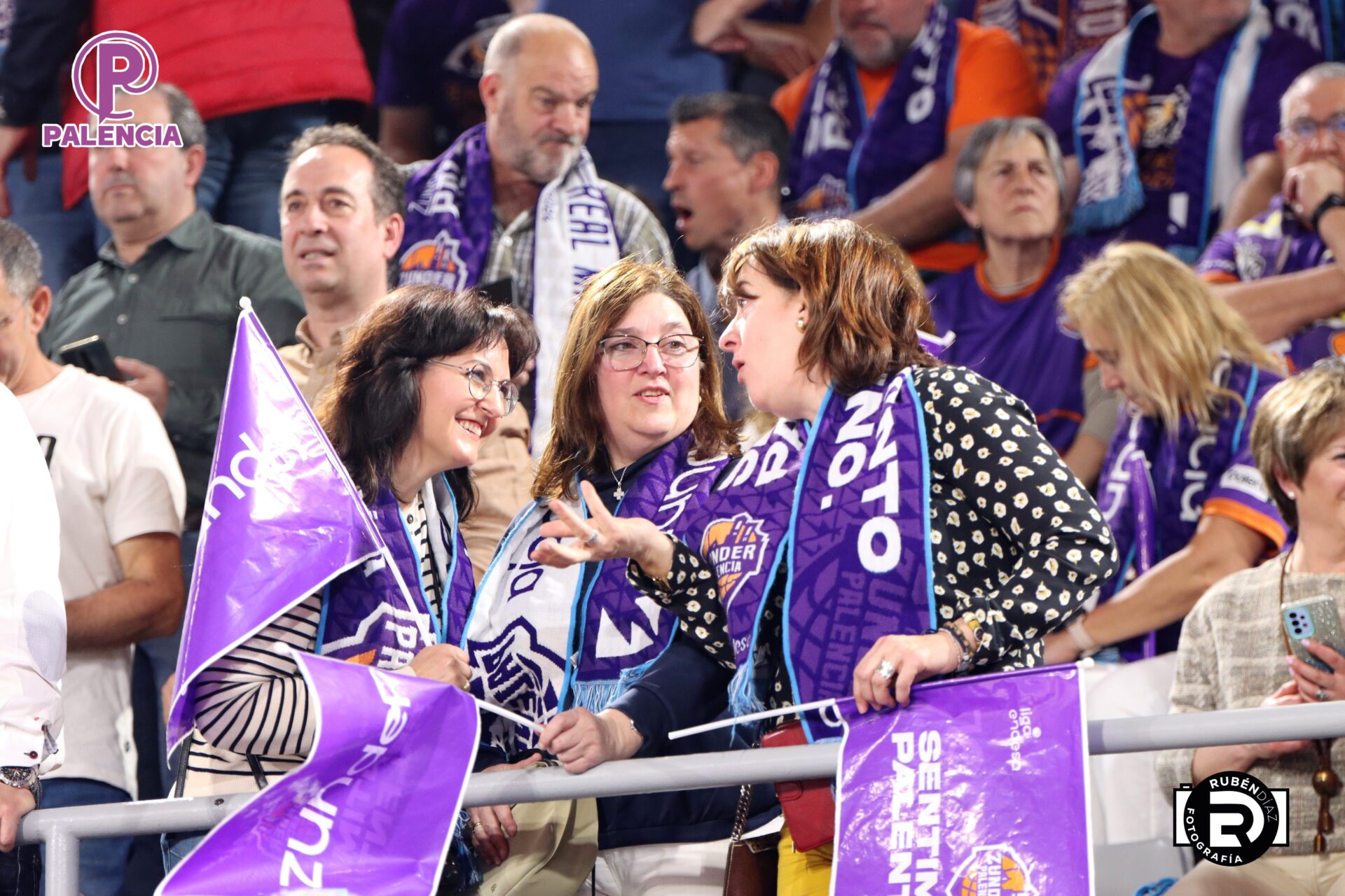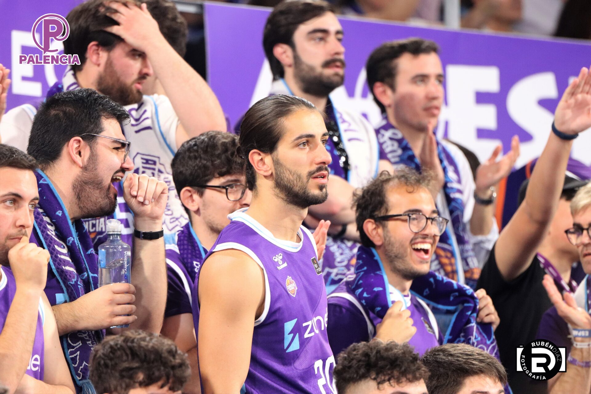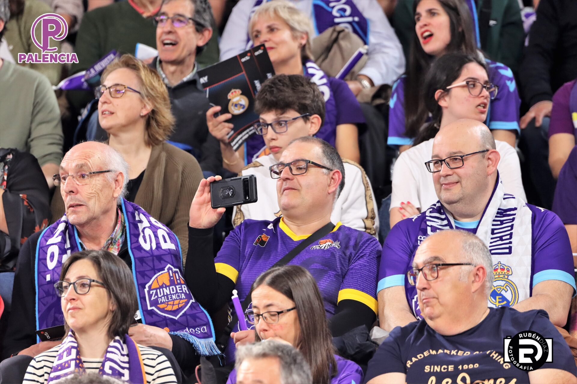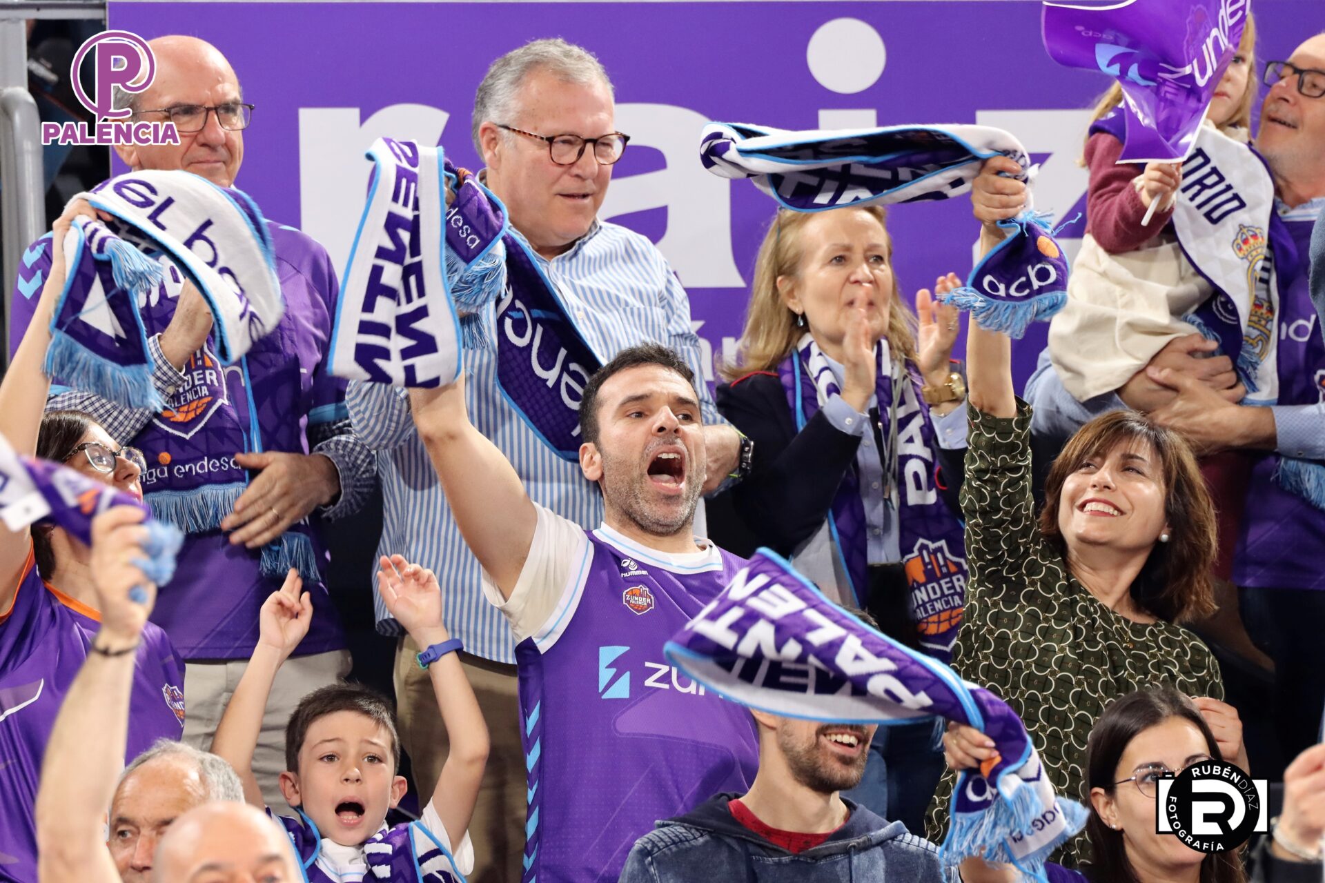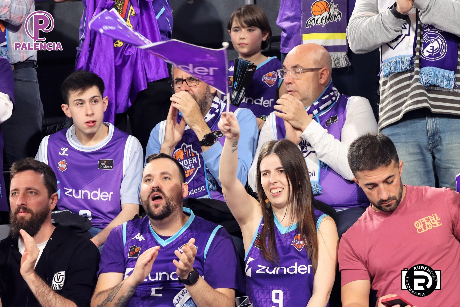 Tan especial era la jornada en las gradas que los aficionados, palentinos, pero también varios centenares de madrileños, se encontraron unos aplaudidores de la ACB, y también de banderas con los colores morados.