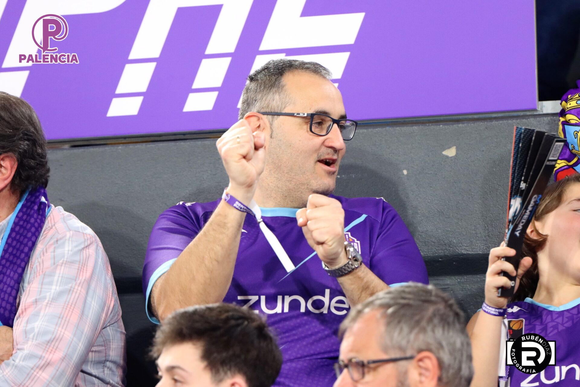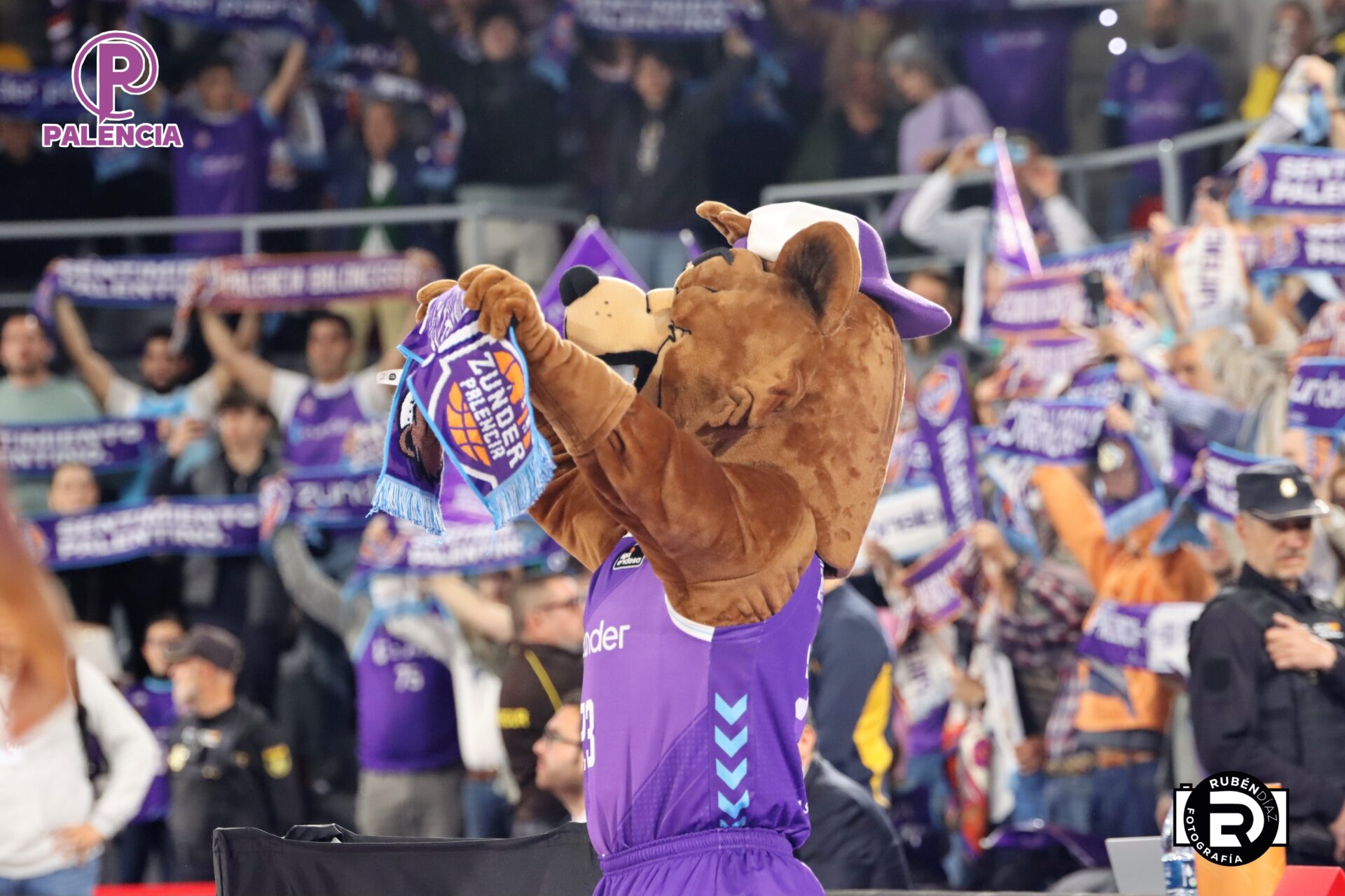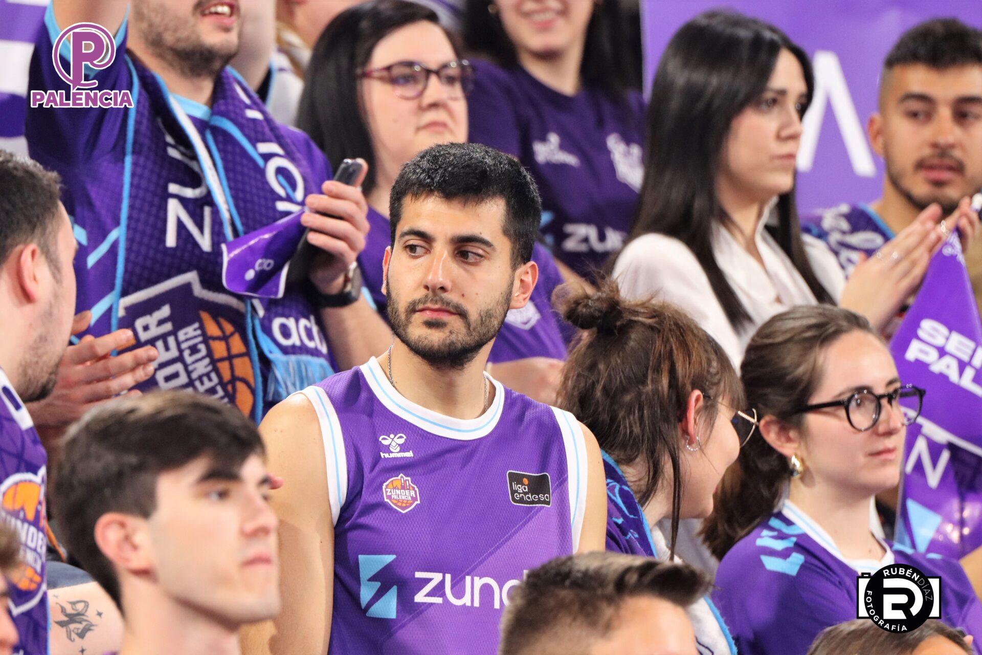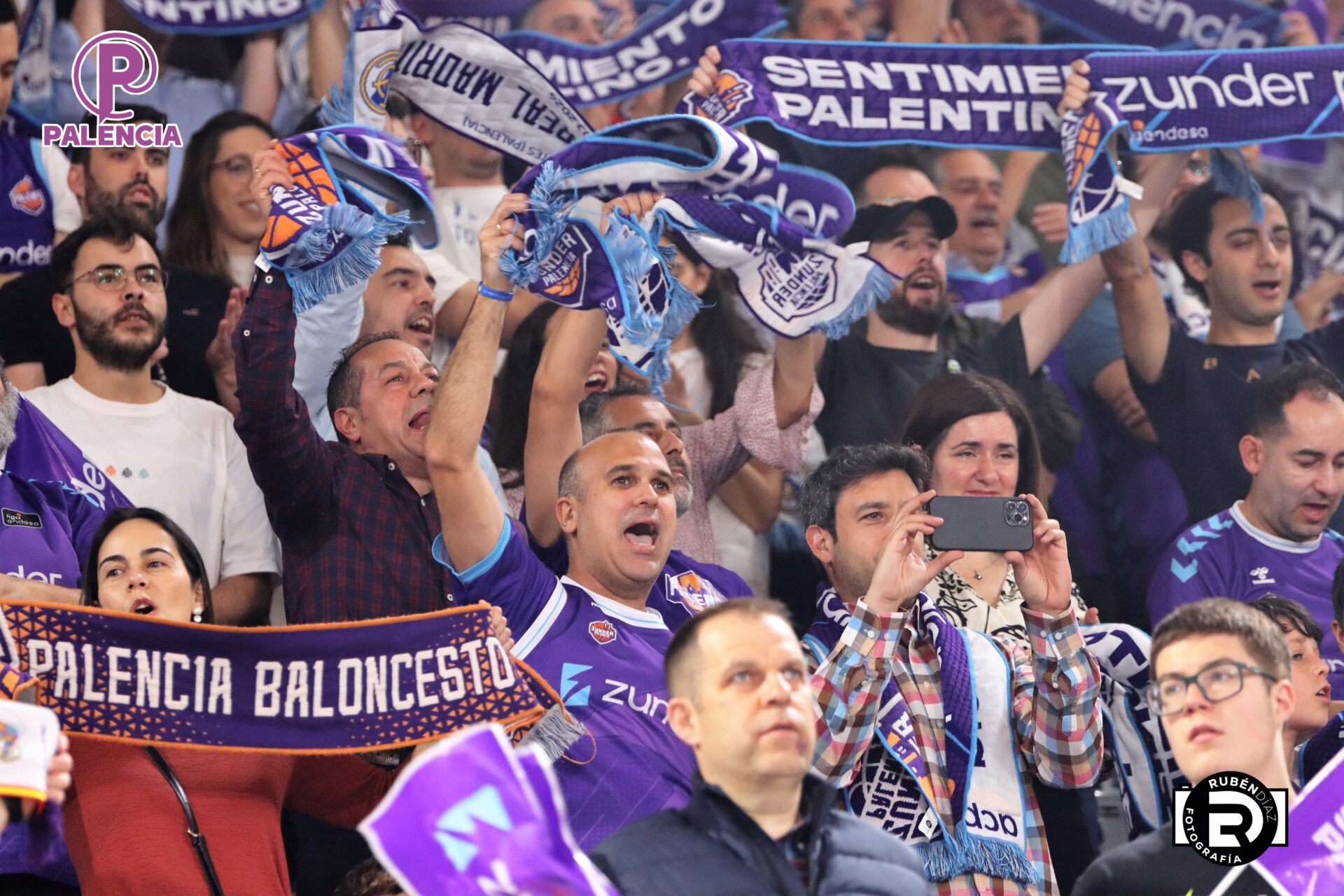 Tan especial era la jornada en las gradas que los aficionados, palentinos, pero también varios centenares de madrileños, se encontraron unos aplaudidores de la ACB, y también de banderas con los colores morados.