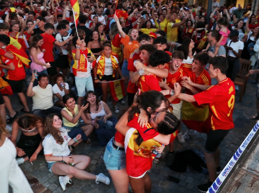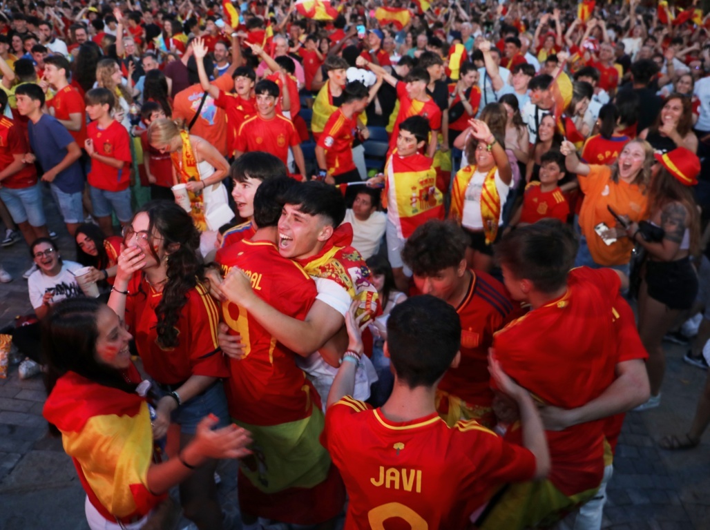 Con cada gol de la selección, la plaza estalló en gritos de alegría, abrazos y cánticos. Banderas, bufandas y camisetas rojas dominaron el paisaje urbano, transformando la Plaza Mayor en un mar de rojo y amarillo.